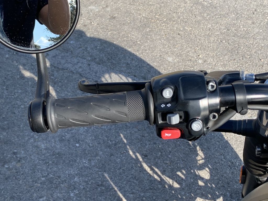 The innovative twin-skin exhaust system with eye catching sawn-off peashooter silencers, plus unique twin airbox setup, deliver the signature hot-rod sound, while neatly hiding the catalyst under the bike.