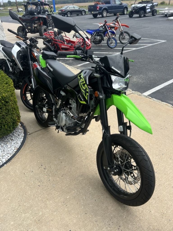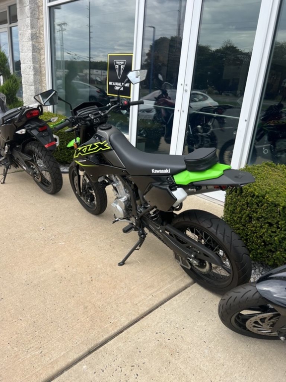 The KLX®300SM ultimate lightweight supermoto motorcycle takes the fun to the streets in full supermoto style. A quick-accelerating engine, paired with light, agile handling, evokes the playfulness within. Suspension, wheels, and brakes are optimized for supermoto, and the overall aggressive styling means business. The KLX®300SM is quick to steal the scene with equal parts performance and attitude.