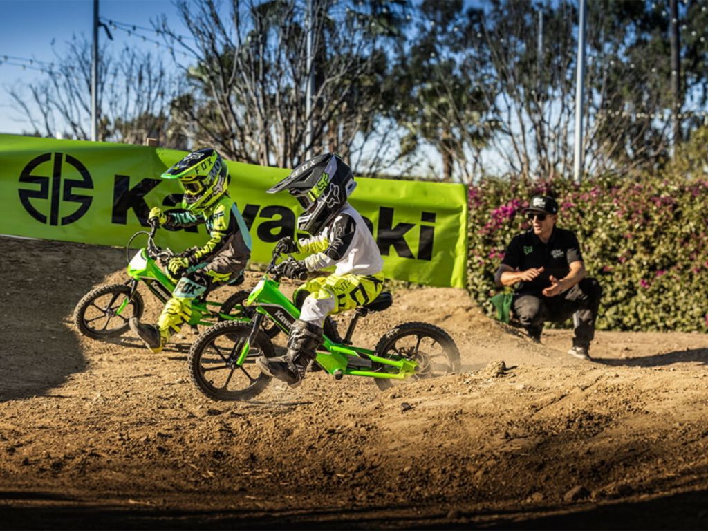 From the brand behind the KX™ motocross powerhouse comes the all-new Elektrode™ electric balance bike. Little rippers can now start their journey on two wheels as early as three years old. Meaning, the path to the podium now starts earlier than ever. It's an official welcome to world-class, high-performance, iconic Kawasaki vehicles when young riders get started on the Elektrode.