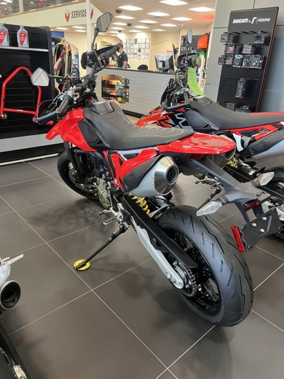 The bike is equipped with lightweight cast rims with five Y-spoke design, for a weight reduction of 1 lb. compared to a similar set of spoked rims and even greater riding precision. The bike mounts Pirelli Diablo Rosso IV tires. A 160/60 was chosen for the rear, the ideal size to highlight the dynamic qualities of the Hypermotard 698 Mono.