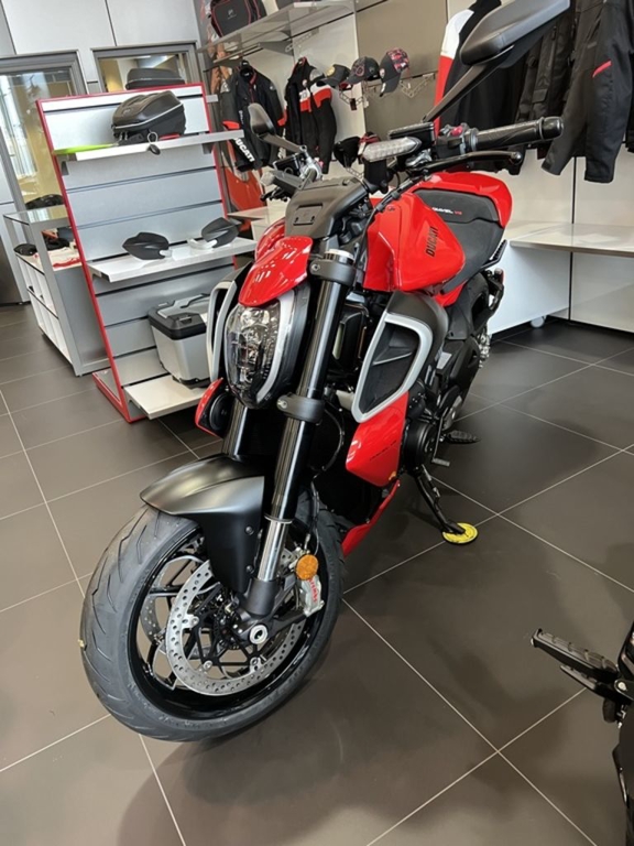 Unmistakable design .Unique personality.Muscular, gritty, with its broad "shoulders" and proudly visible four-exit exhaust, the Diavel V4 is designed to convey boldness and not go unnoticed. Starting with the new front and rear light cluster, to the retractable passenger footpegs and the retractable rear grab bar are the details that make the difference and make the design of this bike even more unique and unmistakable.