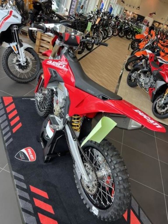 Born to compete, developed on track. The Desmo450 MX is the first Ducati motocross bike with desmodromic timing designed to carry Borgo Panigale racing DNA off-road. Lightweight, powerful and essential, it combines advanced technology and maximum performance to ensure speed, control and pure adrenaline.