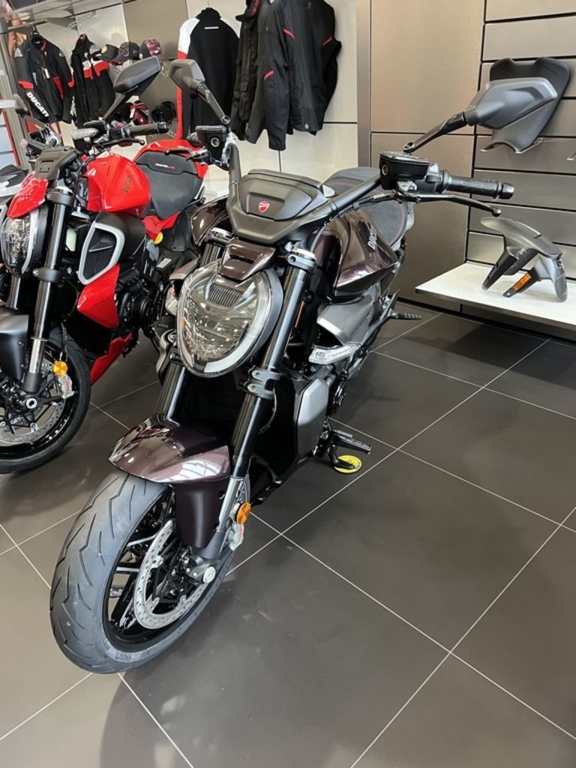 The XDiavel V4 riding position is relaxed, with a wide handlebar, forward footpegs, and a roomy spoon-shaped seat. At the same time, the handlebar/footpeg/seat triangulation offers the necessary control to exploit the bike’s dynamic qualities. For those wanting a sportier riding position and greater lean angles, the footpegs can be centrally repositioned using the kit available as an accessory.