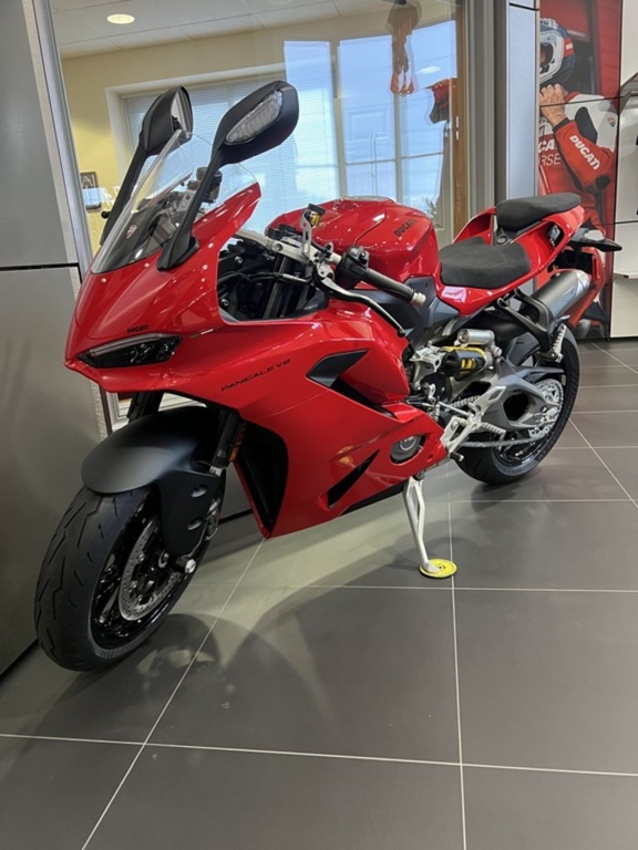 The new Ducati Panigale V2 marks a historic transition in the history of Borgo Panigale twin-cylinder sports bikes. For the first time it does not derive from the larger motorcycle that competes in Superbike and has been designed from scratch, which has resulted in the creation of the lightest ever Panigale. It weighs a good 37.8 lb less than the previous model, inheriting the characteristic sports attitude and track performance of that bike and adding a level of ease, comfort and riding pleasure.