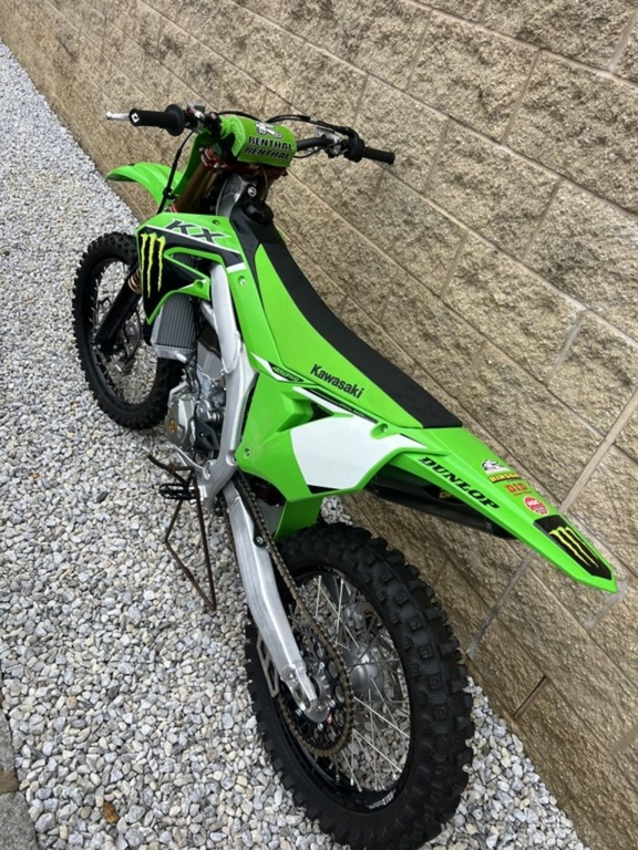 Featuring special tuning and elite-level racing components, the all-new limited edition 2022 KX™450SR motorcycle is built to win right out of the box. This bike is designed to further elevate the performance, durability and styling of the already championship-proven KX™450 platform by partnering up with the most respected names in the sport. With only limited quantities available, now is your chance to cross the finish line first with this one-of-a-kind race machine.