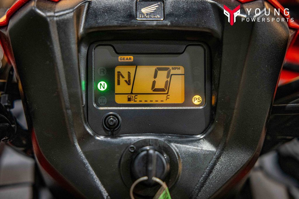 The digital meter display includes a Maintenance Minder system that signals when it’s time for service. Other functions include a trip odometer, hour meter, gear position indicator, fuel gauge, clock, and 2WD/4WD.