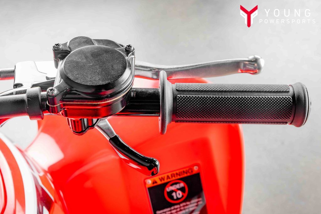 The throttle features an adjustable limiter, allowing parents to control the speed and power of the ATV.