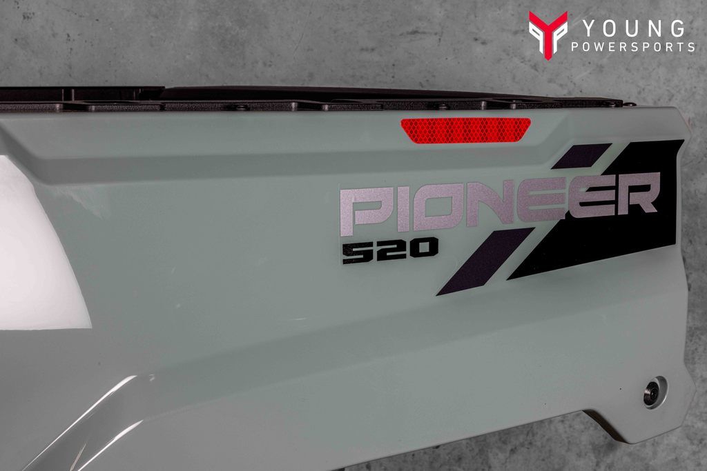 Compact yet mighty, the updated 2026 Pioneer 520 offers exceptional versatility with its 518cc engine, 50-inch width, and 1000-pound towing capacity. Now with increased top speed, standard under-seat storage, and improved heat management to keep the cabin cooler, it's perfectly designed to fit your life's adventures.