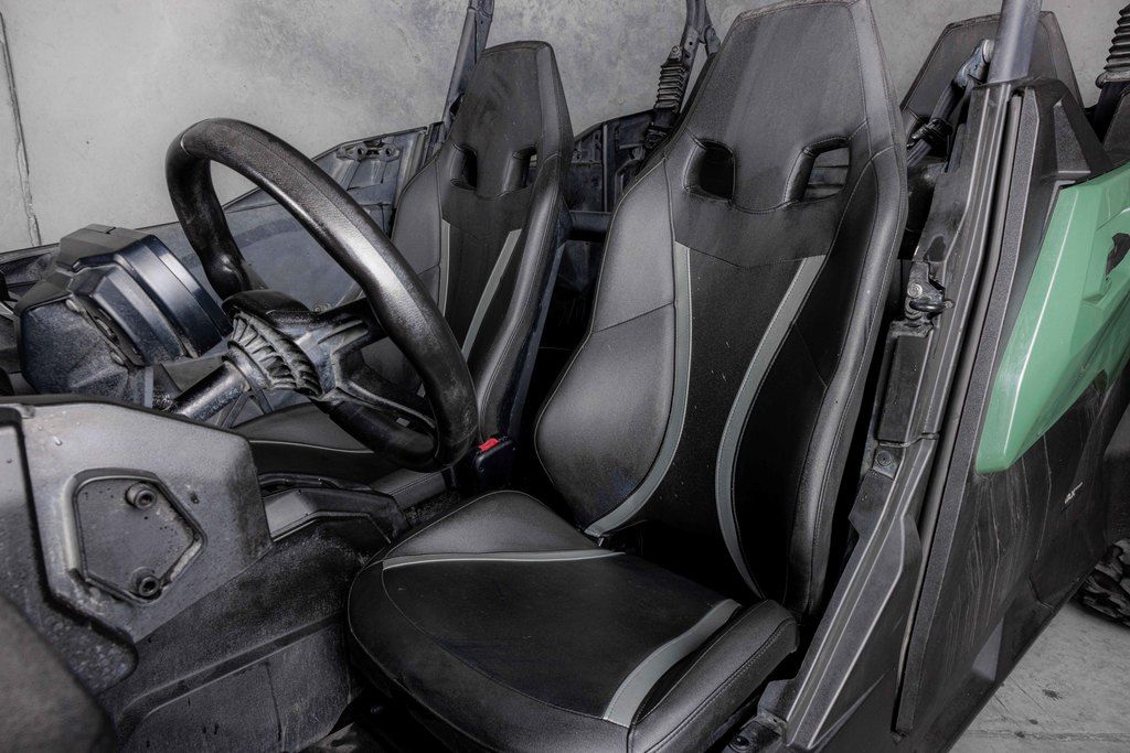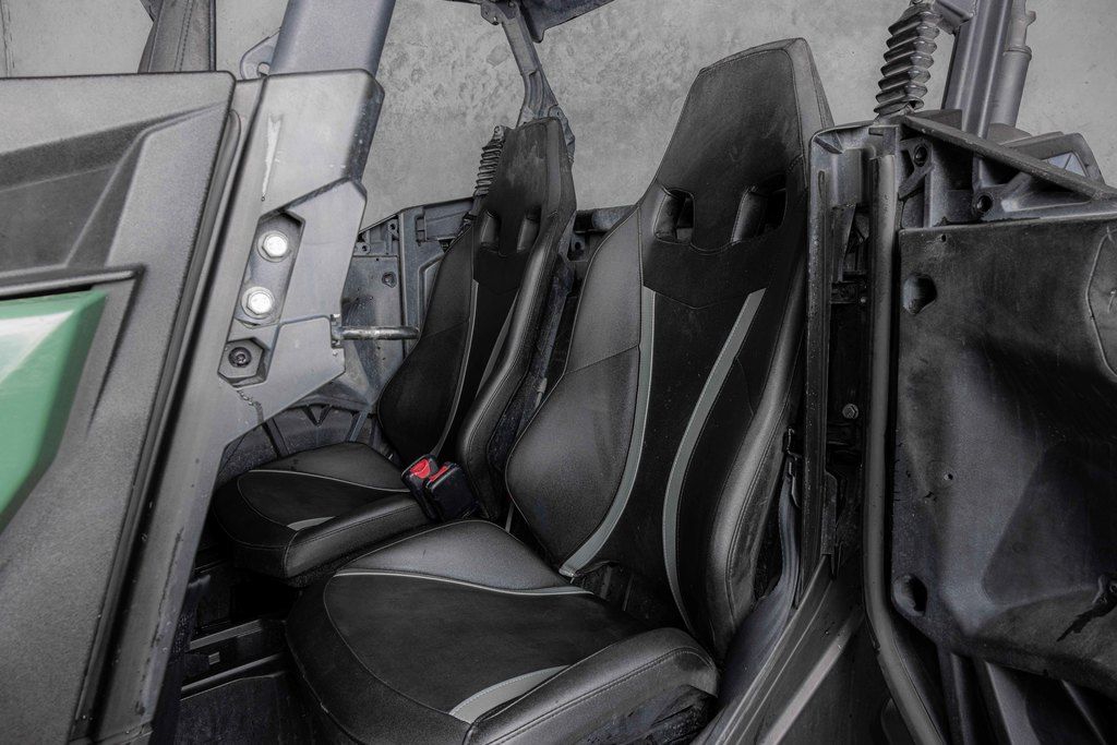 INSIDE LOOKEven when you’re way out there, it’s what’s inside that counts. The new rider-focused interior’s got comfort and functionality that goes above and beyond. Comfortable and secure bucket seats for up to four rugged riders, adjustable driver's seat, wider opening doors, tilt steering wheel, full skid-place, premium half-door, plus a sport roof on the XT and XT-P. Ladies and gentlemen, take your seats.