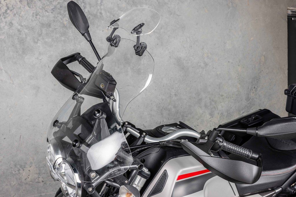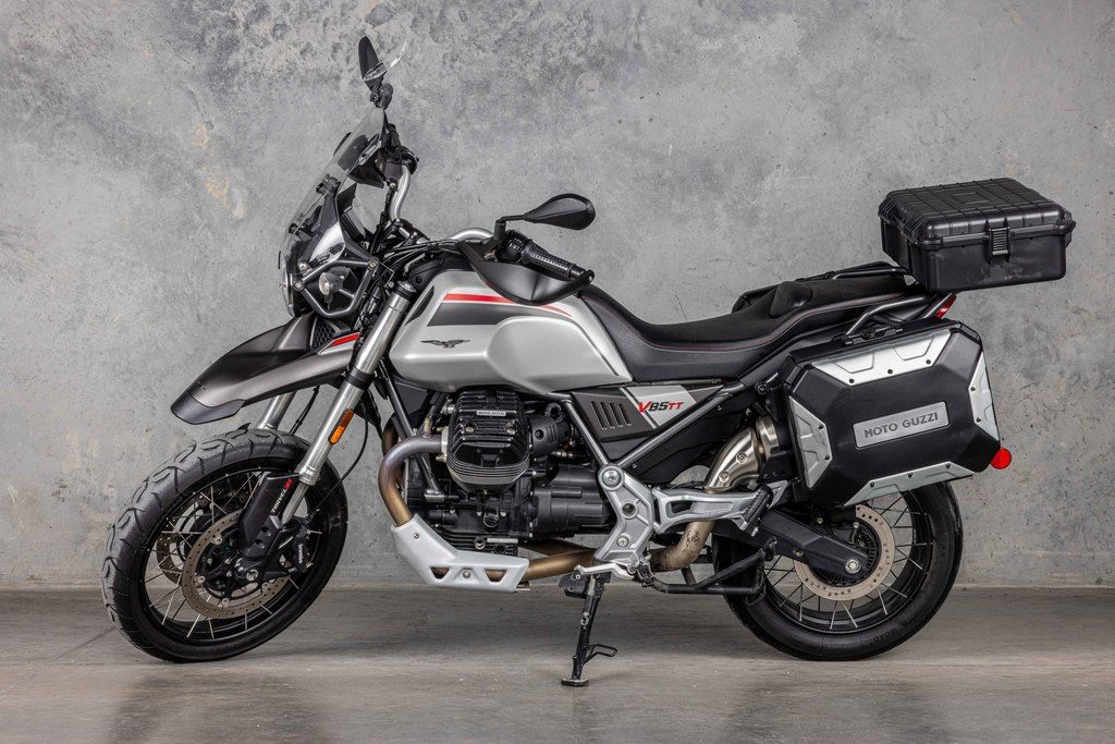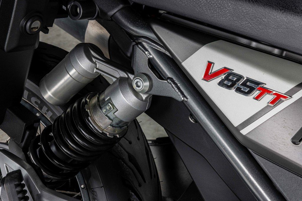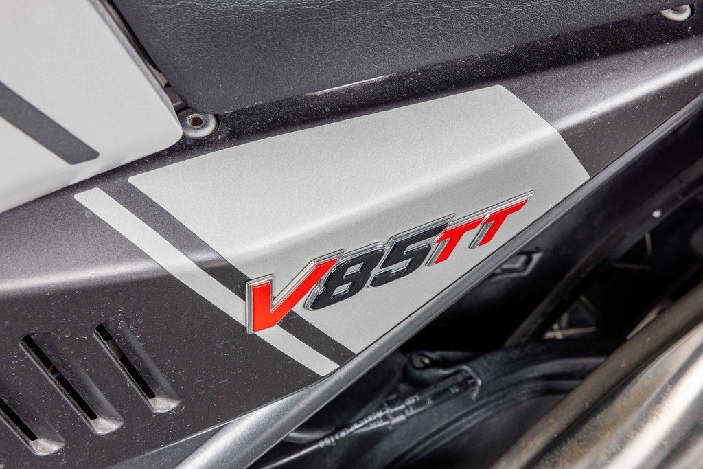 STYLEThe Moto Guzzi V85 TT Guardia d'Onore cuts a dash with its combination of elegant black livery and white graphics on the front mudguard, fuel tank, side panels and windshield. This is the bold, streamlined look that has flanked presidential envoys for 75 years. Now you too, can experience its might.