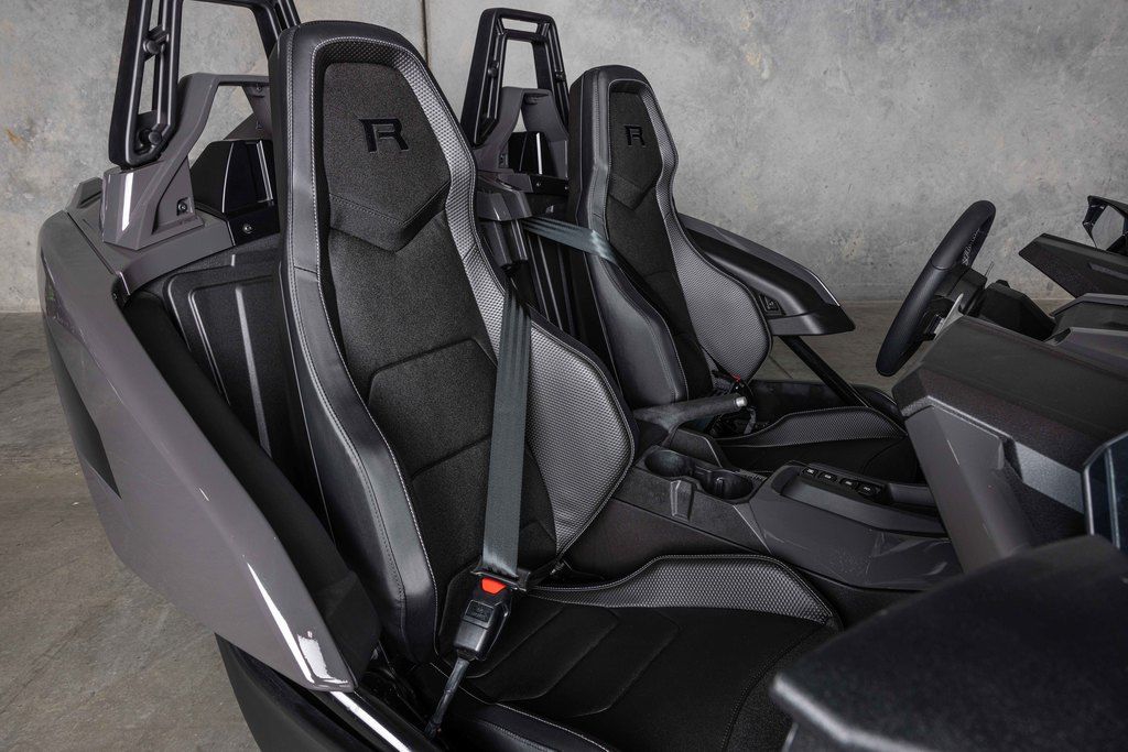 The Slingshot R delivers top of the lineup enhancements for those who never settle and love to stand out. The front end gets a high-performance facelift with the newly designed, fully painted R front fascia and the eye-catching Vented Sport Hood. Premium multi-tone paint from tip to tail, integrated navigation, Apple CarPlay®, machined wheels, and Brembo® brakes round out this top of the line model. For AutoDrive, the R model ups the fun-factor with the addition of paddle shifters. Get ready to stand out like no other—while still having plenty of options to make it your own.