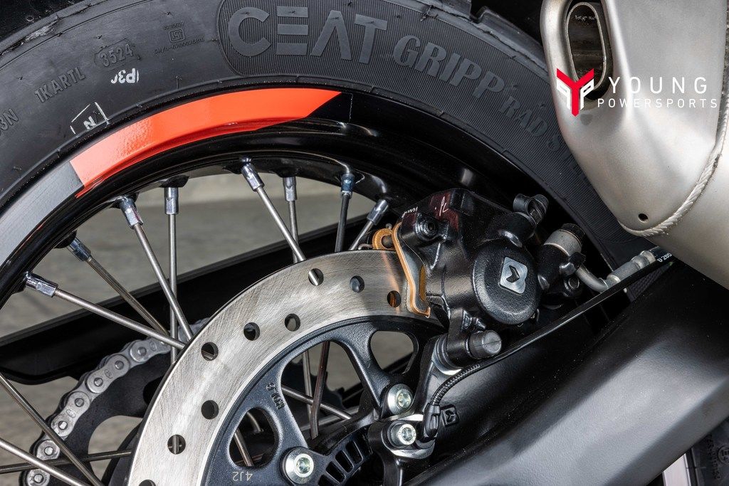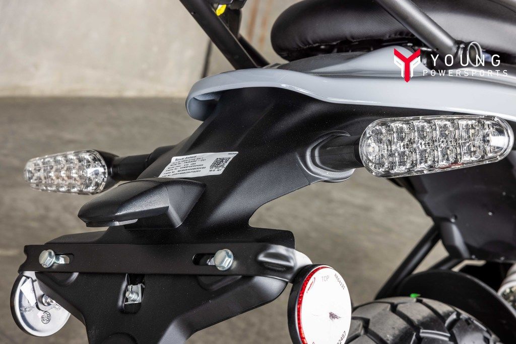 The steel twin-spar frame is stronger, stiffer and narrower between the legs for improved comfort while riding in a standing position. Better handling, better stability and better balance.