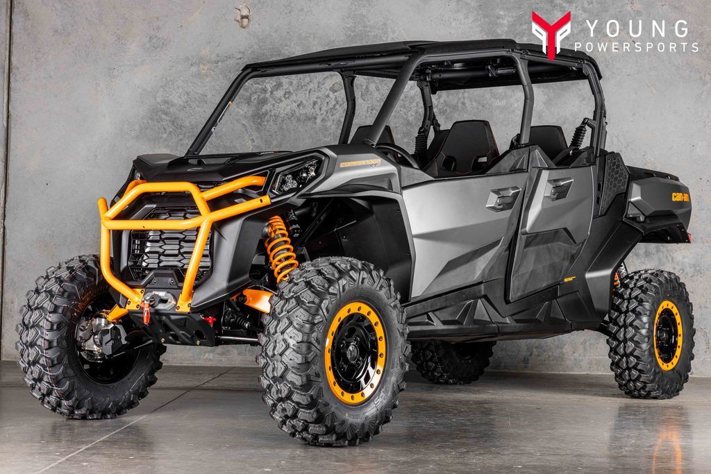 THE TOP DOG. All the oomph of the Commander XT, with even more aggressive features: Fox Suspension, 30 in. XPS Hammer Force tires on 15 in. cast-aluminum beadlock wheels, LED headlights, and Smart-Lok front differential. Turn heads on the trails, and make them turn fast with a sporty and stylish look.