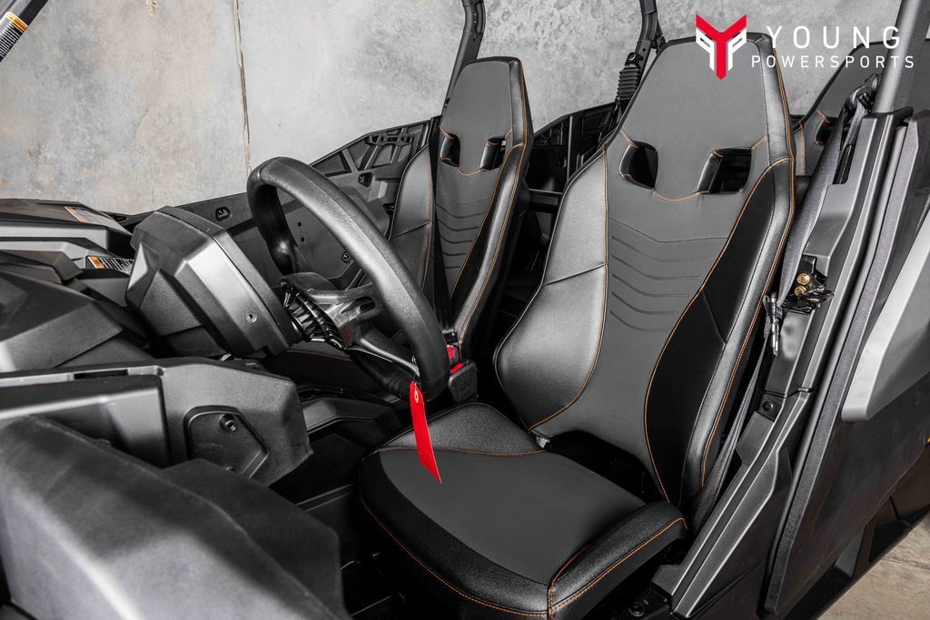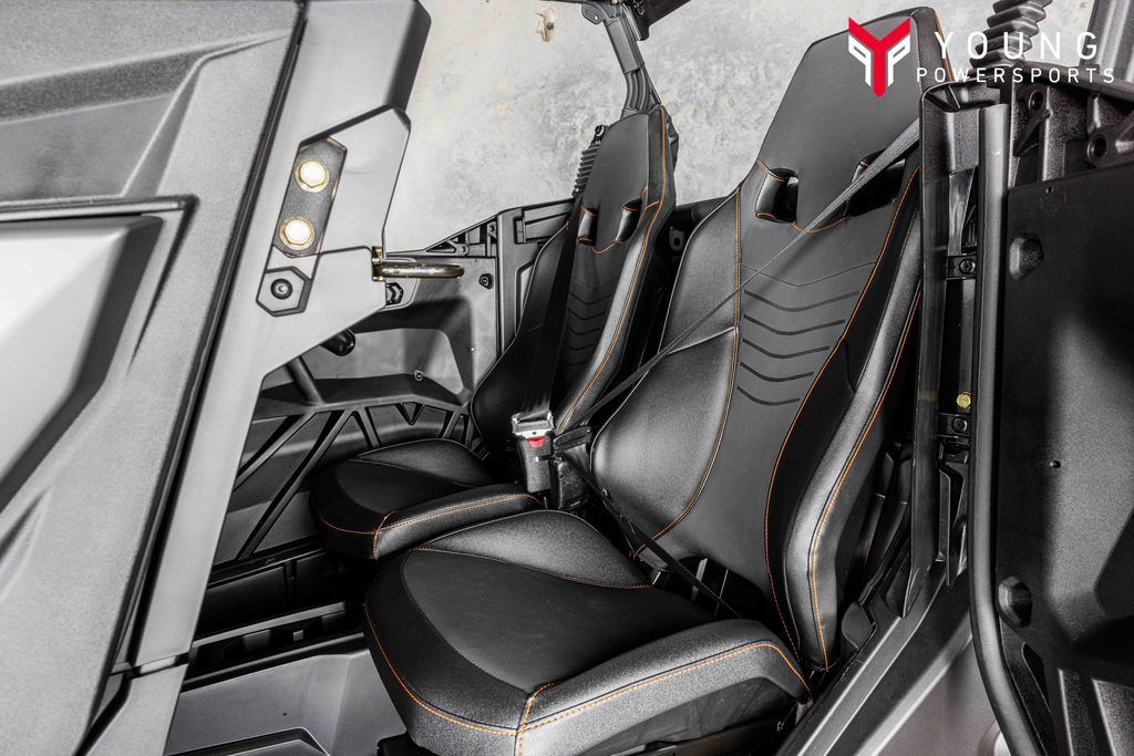 Take the seat of powerIt’s what’s inside that counts. The new rider-focused interior has comfortable and secure bucket seats for up to four rugged riders, adjustable driver's seat, wider opening doors, tilt steering wheel, plus premium half-door. Ladies and gentlemen, take your seats.