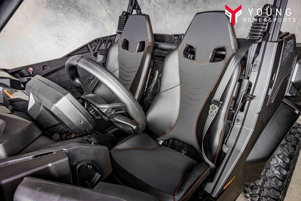 THE TOP DOG. All the oomph of the Commander XT, with even more aggressive features: Fox Suspension, 30 in. XPS Hammer Force tires on 15 in. cast-aluminum beadlock wheels, LED headlights, and Smart-Lok front differential. Turn heads on the trails, and make them turn fast with a sporty and stylish look.