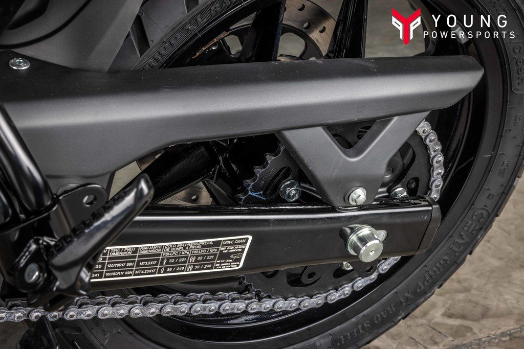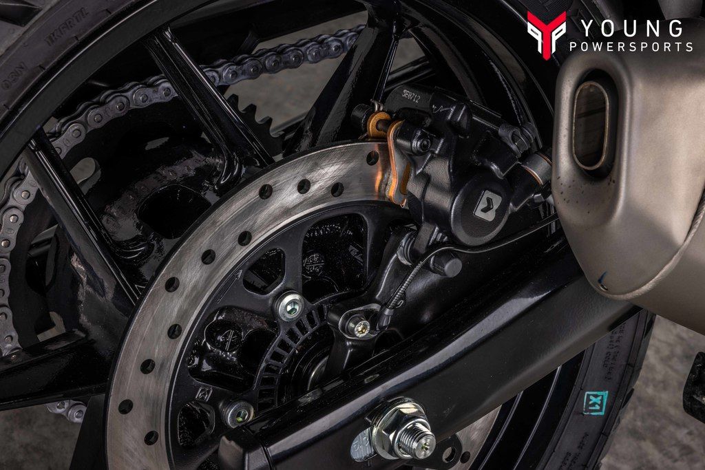 The Guerrilla 450’s 17” inch wheels, 120/70 front & 160/60 rear, wide-profile tubeless tyres with bespoke tread pattern keep you in control through all speeds and all situations.