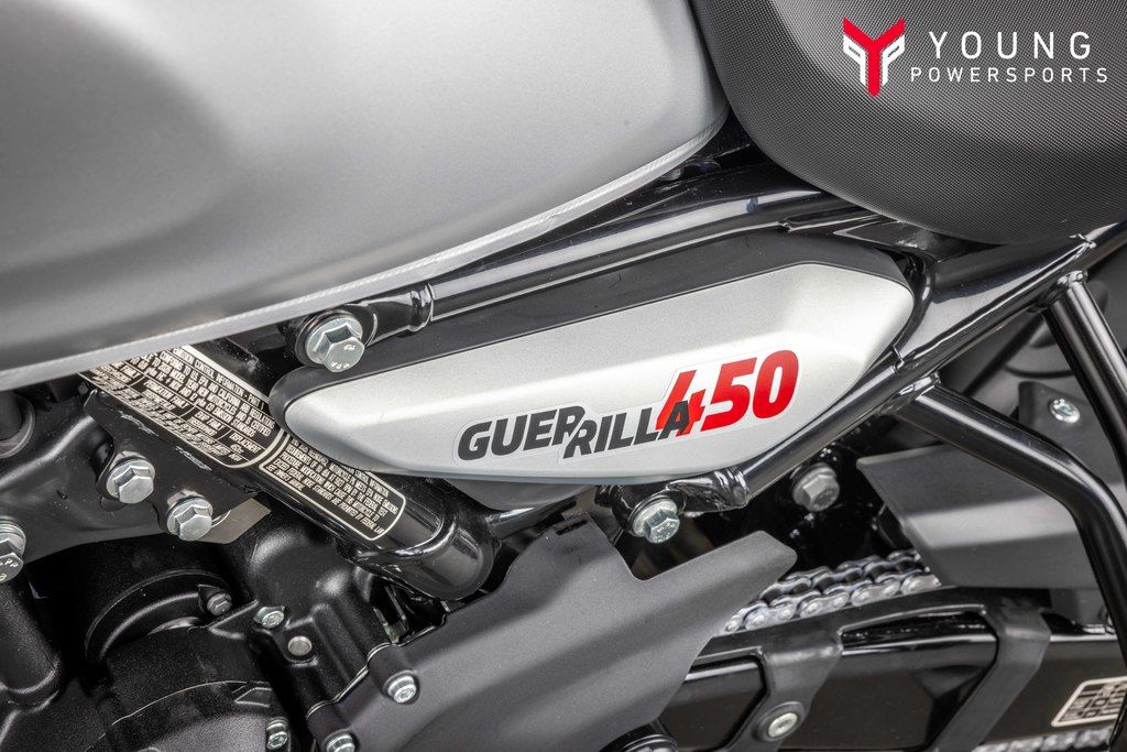 A low seat, mid-set footpegs and upright stance. The Guerrilla 450’s ergonomics adapt to your riding style and enable you to handle everything, from traffic snarls to tight corners.