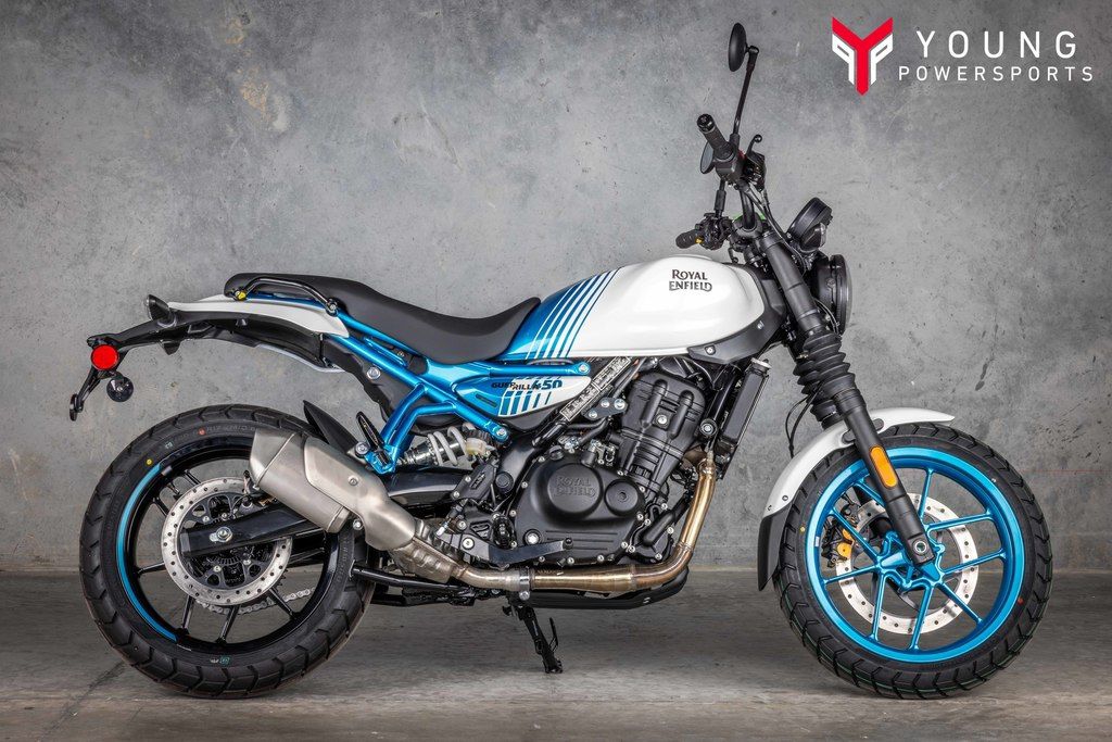 Access your music, messages, maps, and more without taking your phone out with the Royal Enfield Guerrilla 450’s Tripper Dash, featuring Google Maps and a 2.4/5 Ghz Wifi 5 chipset.