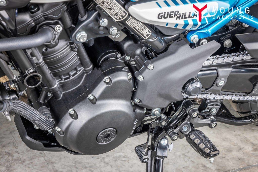 A low seat, mid-set footpegs and upright stance. The Guerrilla 450’s ergonomics adapt to your riding style and enable you to handle everything, from traffic snarls to tight corners.