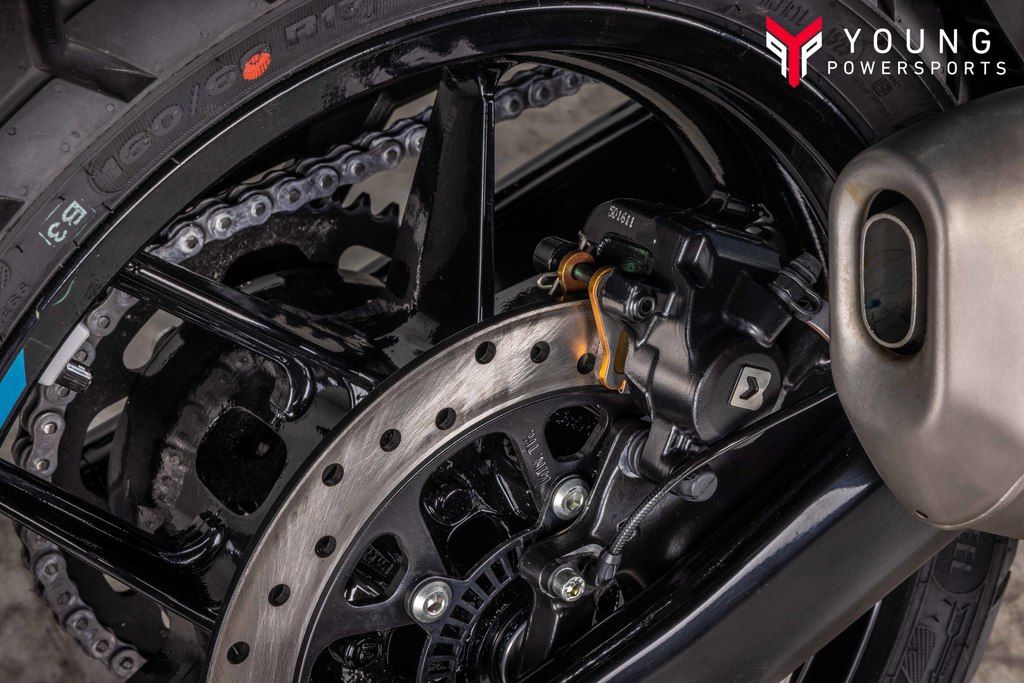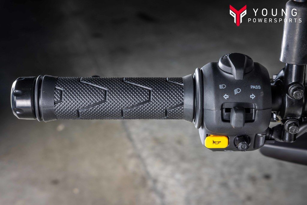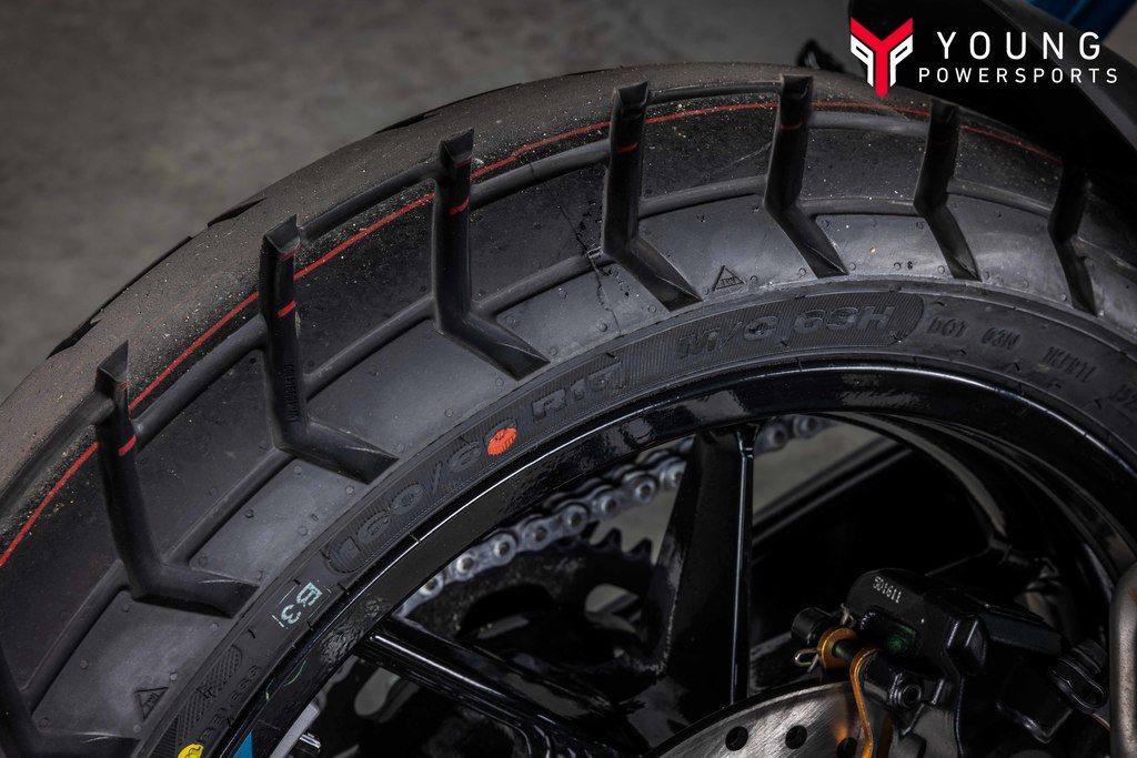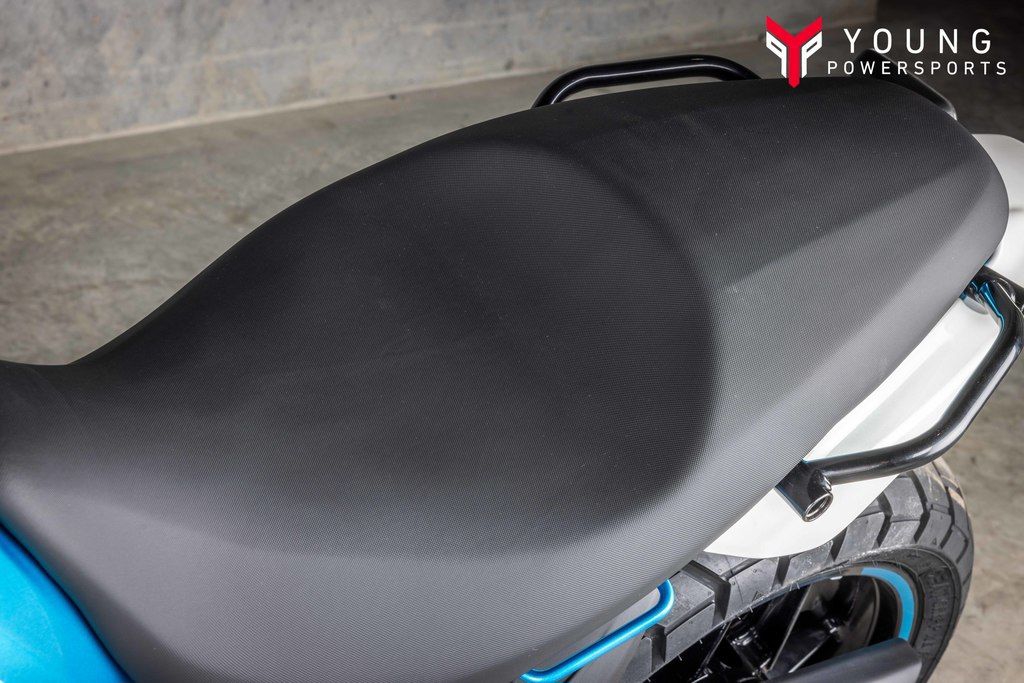 The Guerrilla 450’s 17” inch wheels, 120/70 front & 160/60 rear, wide-profile tubeless tyres with bespoke tread pattern keep you in control through all speeds and all situations.