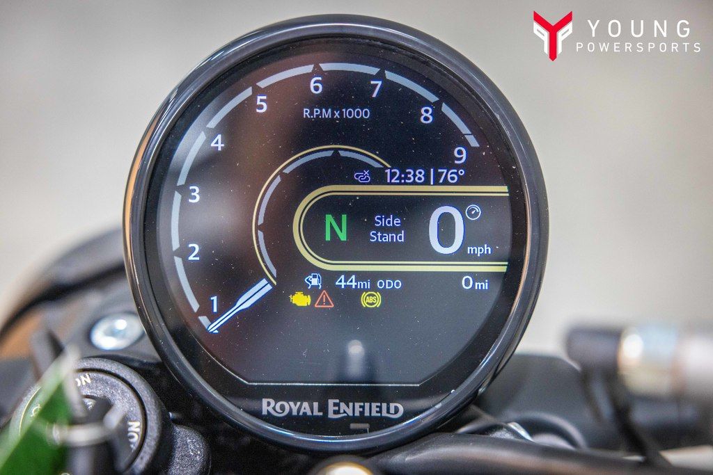 Access your music, messages, maps, and more without taking your phone out with the Royal Enfield Guerrilla 450’s Tripper Dash, featuring Google Maps and a 2.4/5 Ghz Wifi 5 chipset.