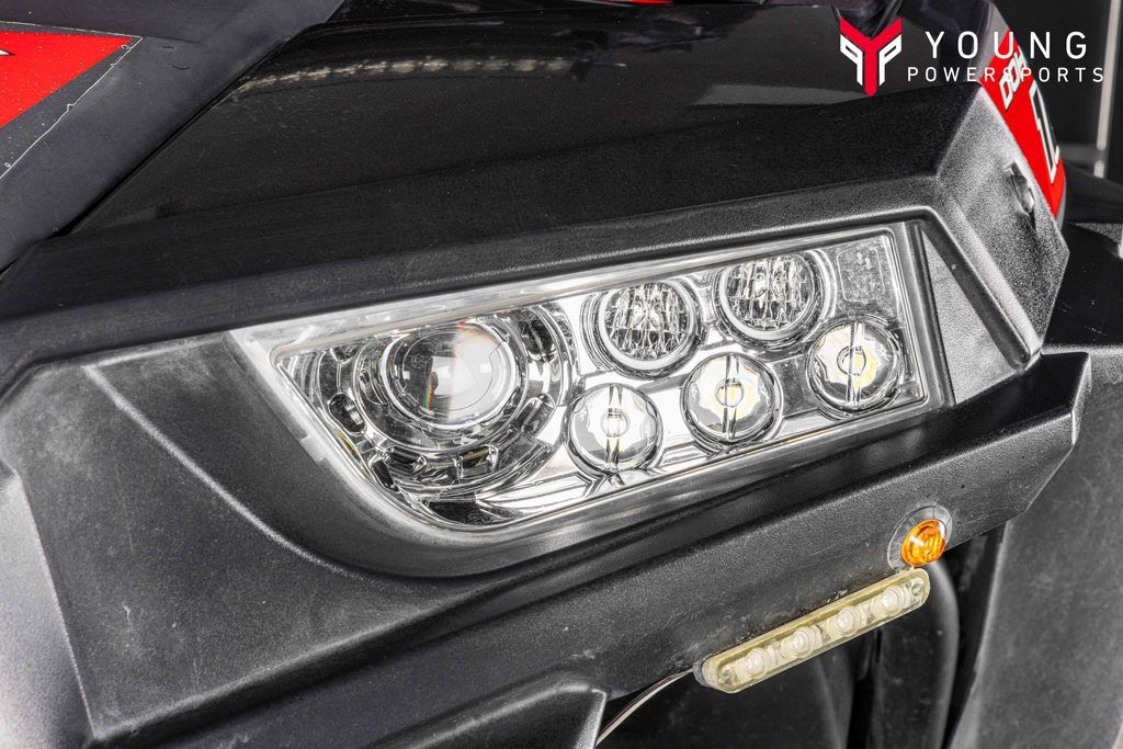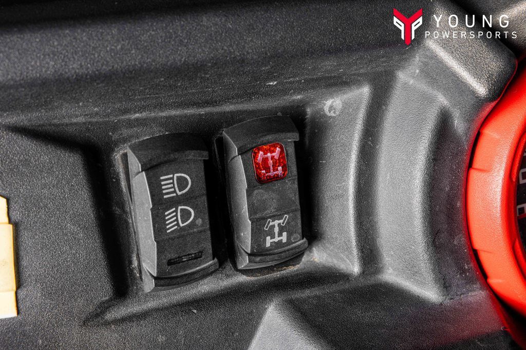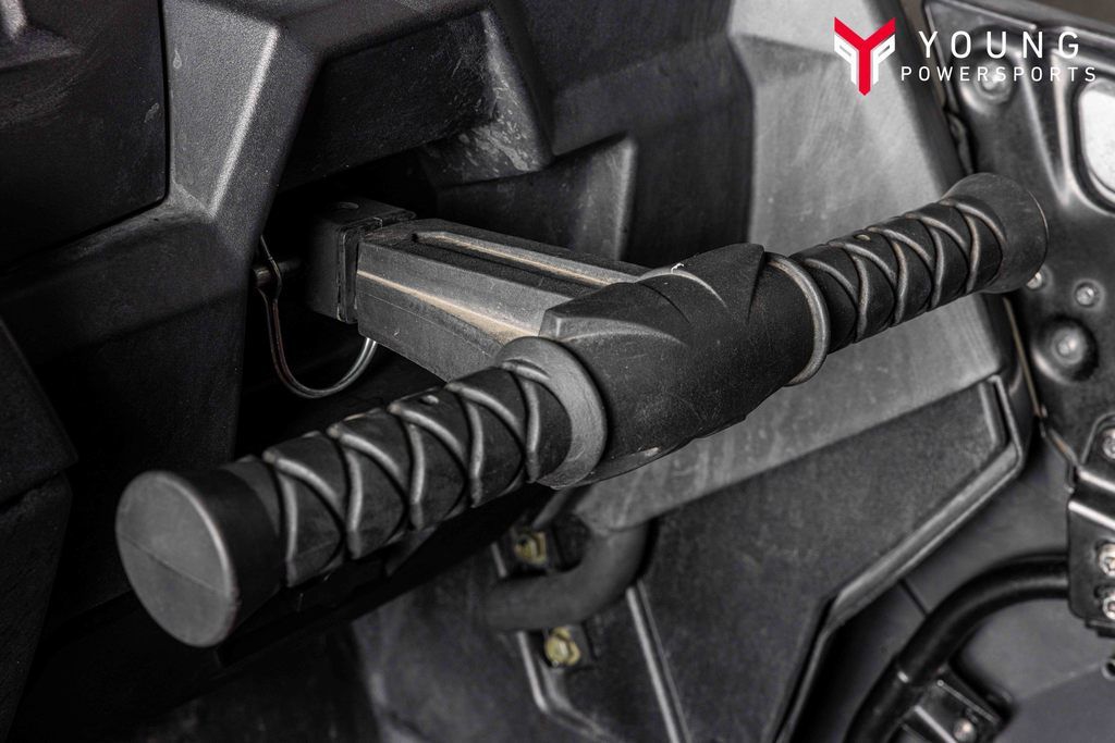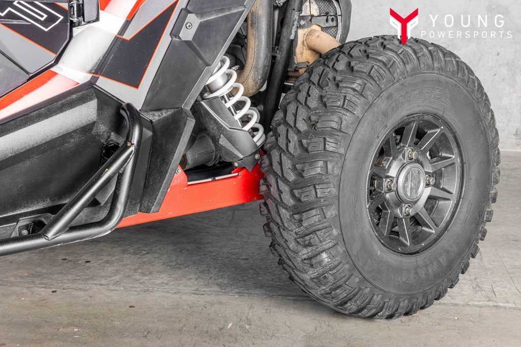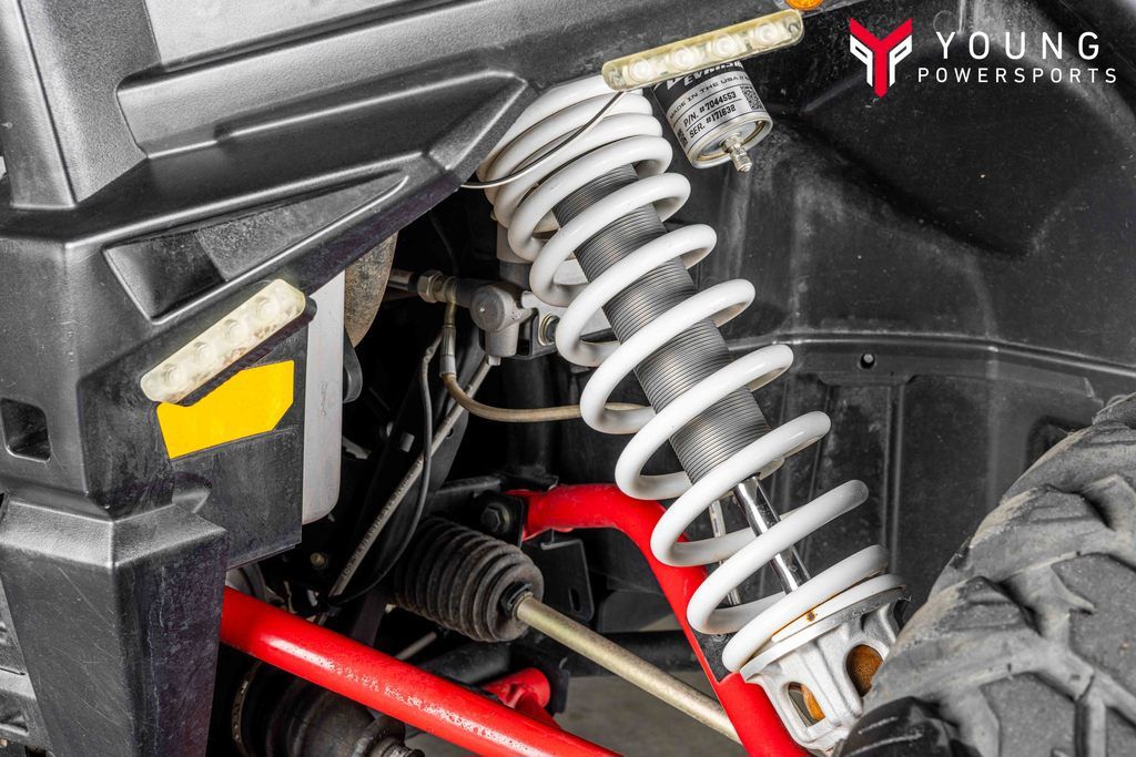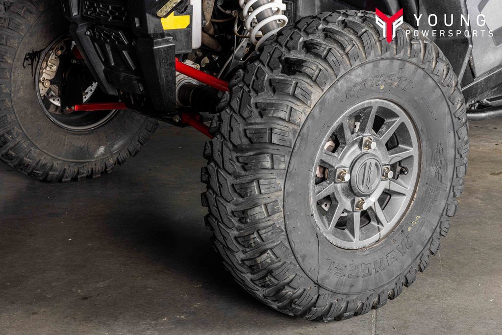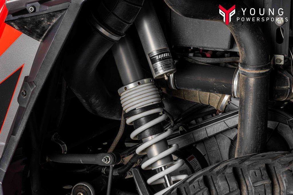 SUSPENSION FEATURESGlide over whoops, rocks, obstacles, and mother nature’s most challenging terrain with our standard-setting suspension. Offering a huge 18-inches of rear wheel travel and 16-inches of front suspension travel thanks to our race-inspired 3-link trailing arm rear suspension and Industry Exclusive Walker Evans needle shocks for near bottomless, next level performance.