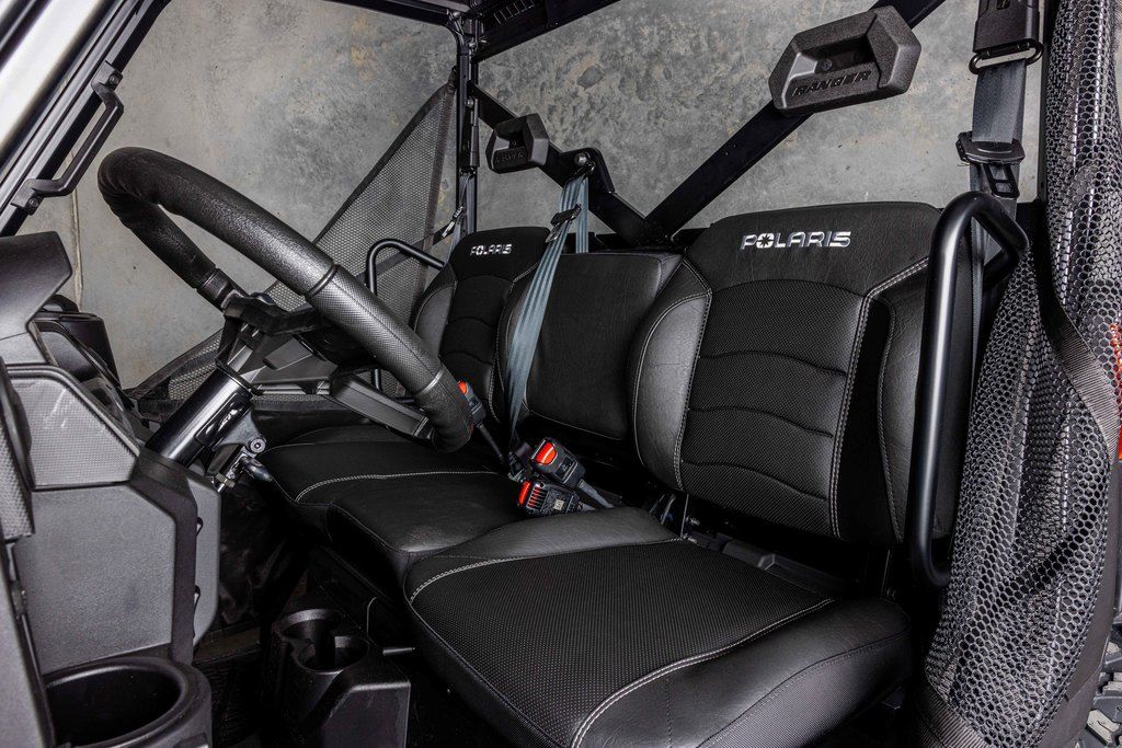 COMFORTRide more comfortably from sunup to sundown, thanks to a tilt steering wheel, contoured seats with back bolsters and a factory-installed roof. Redesigned cab nets offer one-handed operation for easier entry and exit.