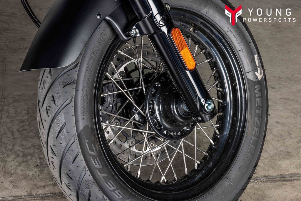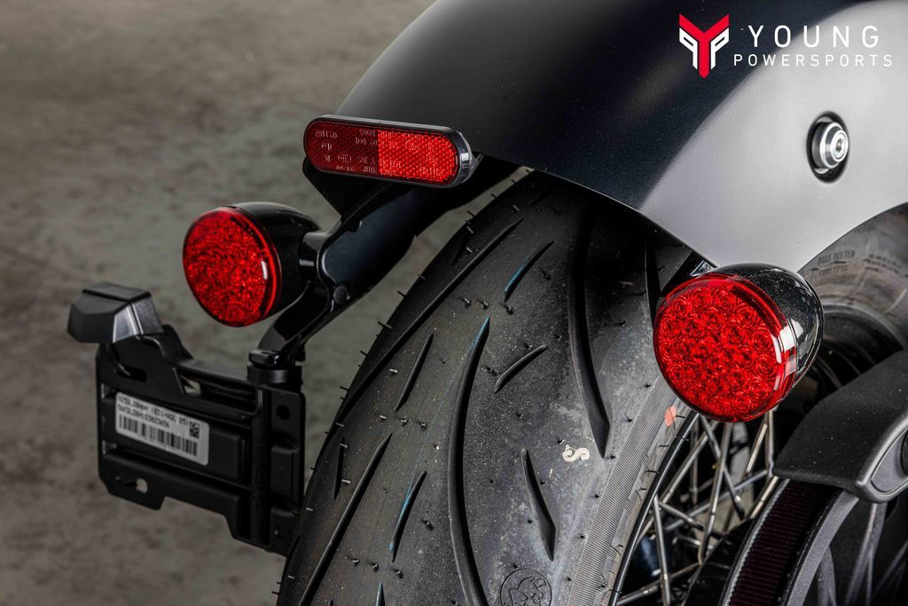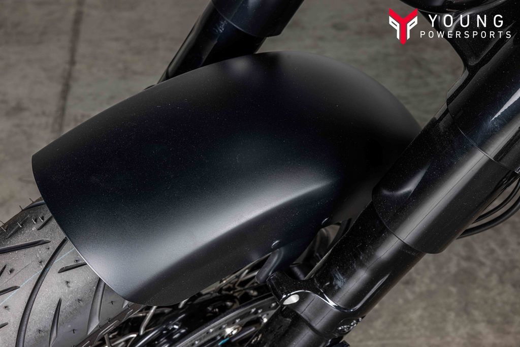 Loaded with attitude and blacked-out premium gloss black finishes with bobbed fenders. A welded steel tube frame, large headlight bucket with nacelle, and covered forks and rear shocks give a nod to traditional bobber style and deliver a visually striking experience.