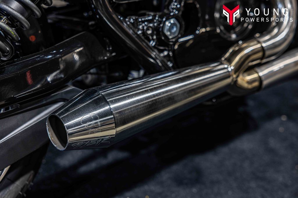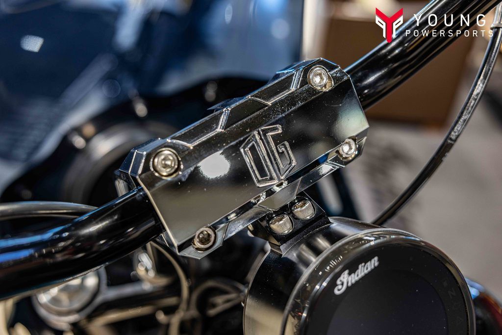 Stylish gloss black 6-inch moto style risers with machine highlights come standard and mean business. Machined triples and moto-style handlebars tie it all together, both in custom looks and dialed ergonomics that fit its aggressive style.