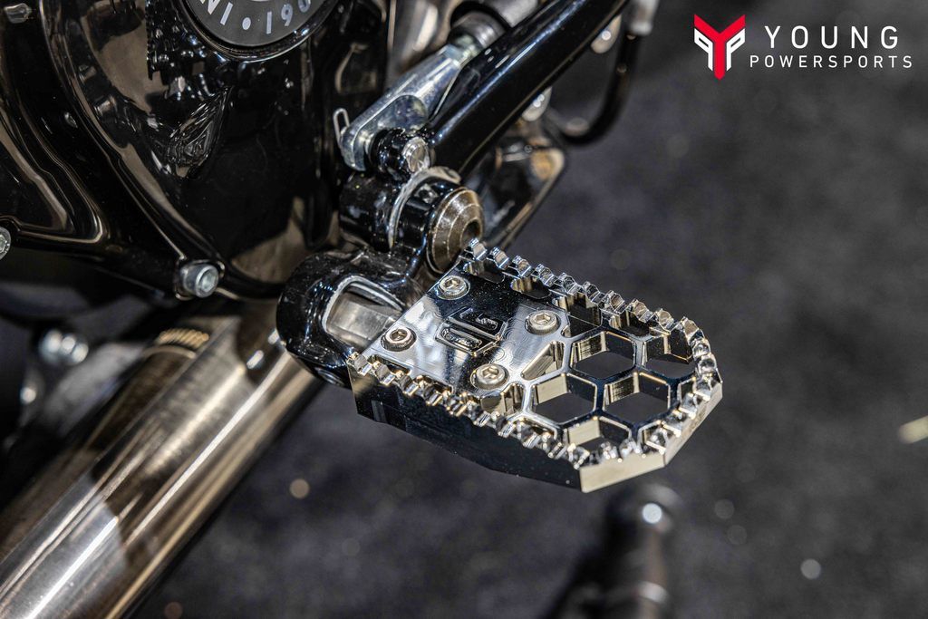 Thanks to a gunfighter style solo seat with taller bolster, increased 29.5-degree lean angle and forward controls, riders can ride harder and longer with more confidence and comfort.