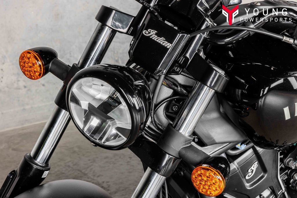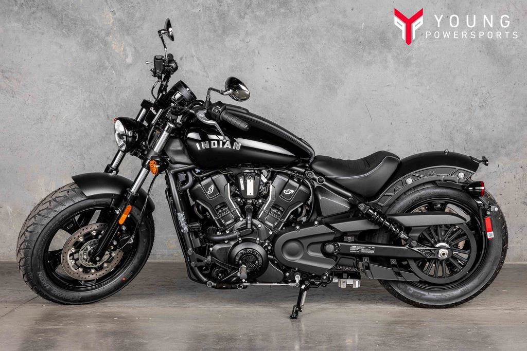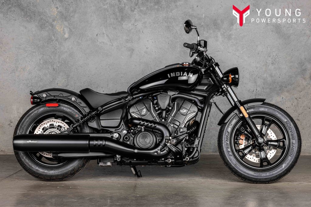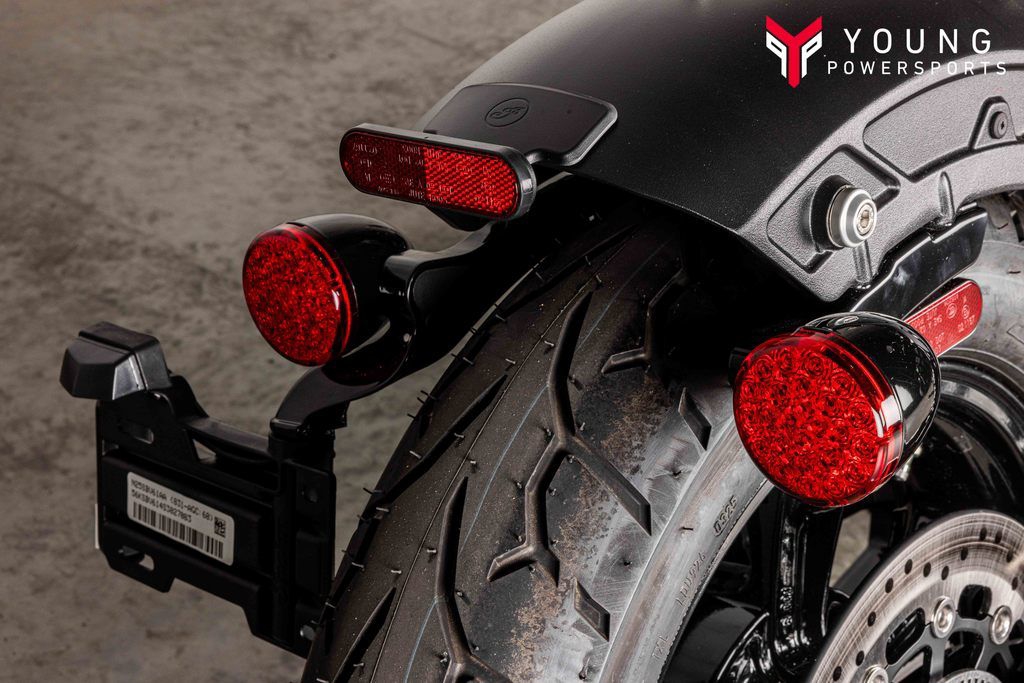 Scout Sixty Bobber features a stripped-down, blacked-out design with a short, bobber rear fender giving a nod to traditional bobber style.
