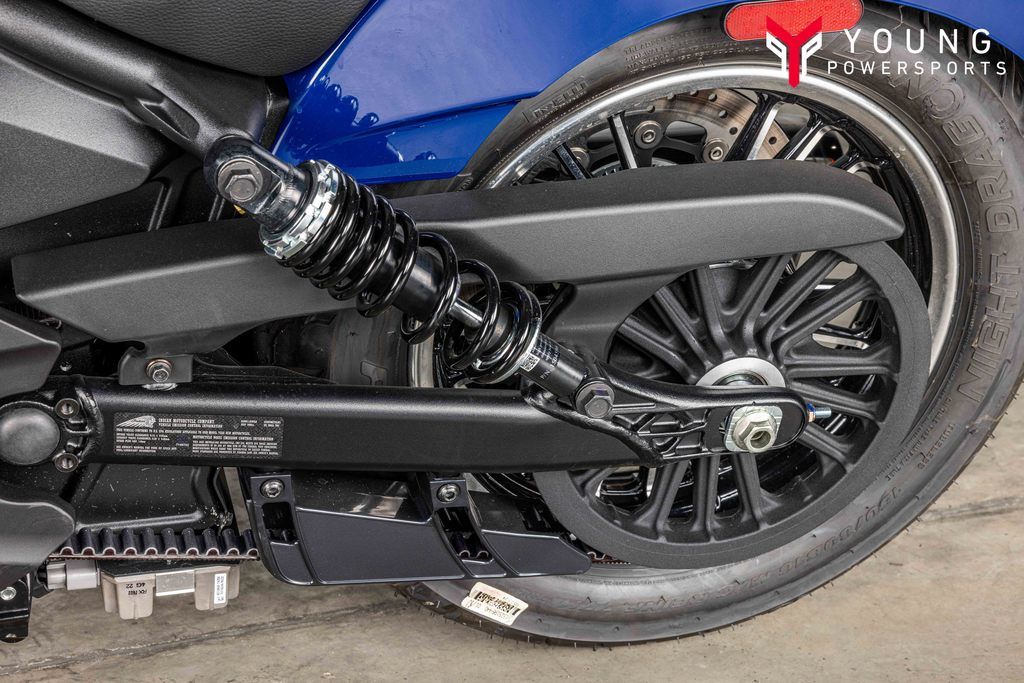 A blacked-out, liquid-cooled V-Twin engine delivers 65 ft-lbs of torque and 85 hp, guaranteeing a thrilling ride. With a 5-speed transmission, it’s a bike you can ride and grow into, not out of.