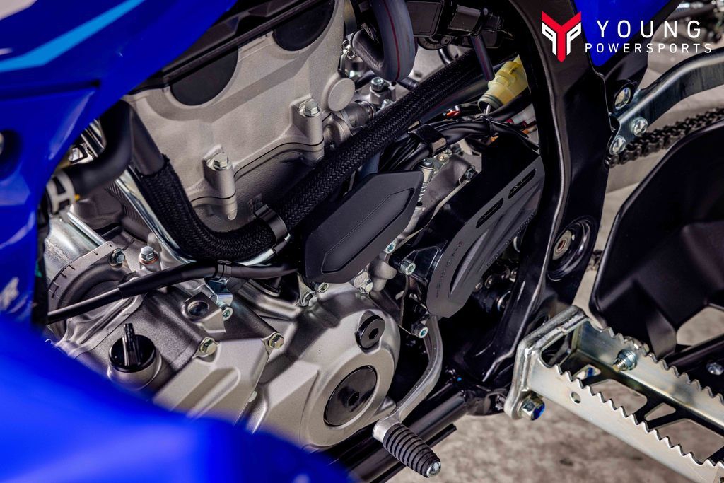 The 449cc engine uses titanium five-valve cylinder head technology to deliver abundant power in the mid-range to top-end with more feeling right off idle. The higher compression ratio further improves overall engine performance.