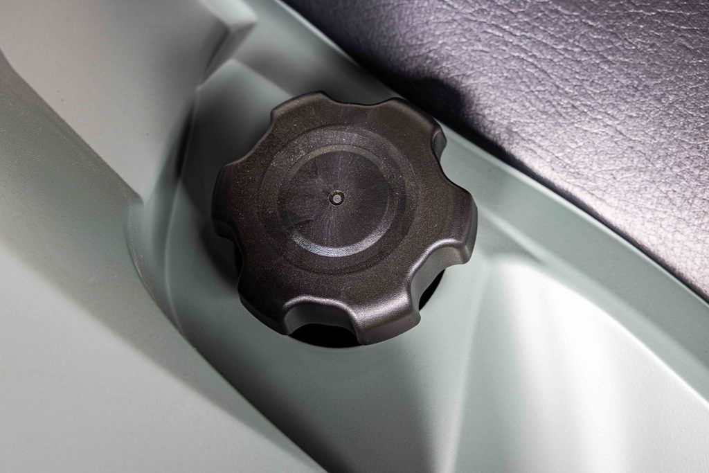 Intake design also provides additional room for on-board storage and easy toolless servicing of the air filter.