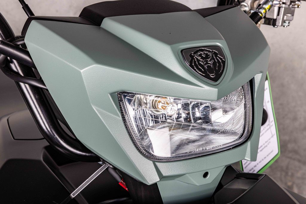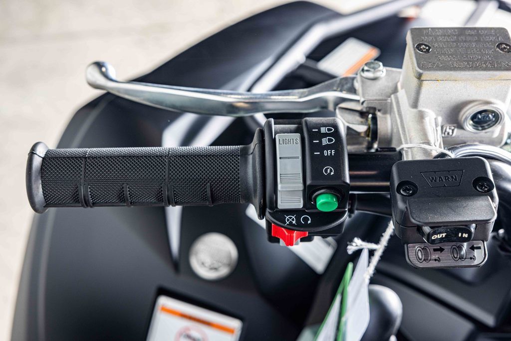 A handlebar-mounted halogen work light provides additional illumination that moves with rider input for excellent visibility.