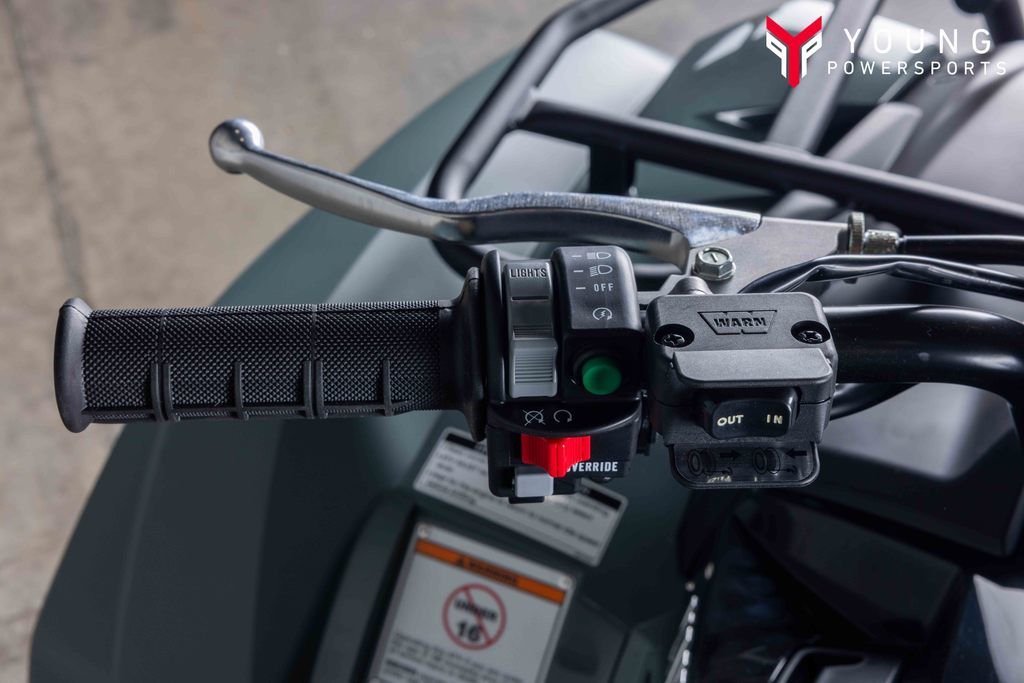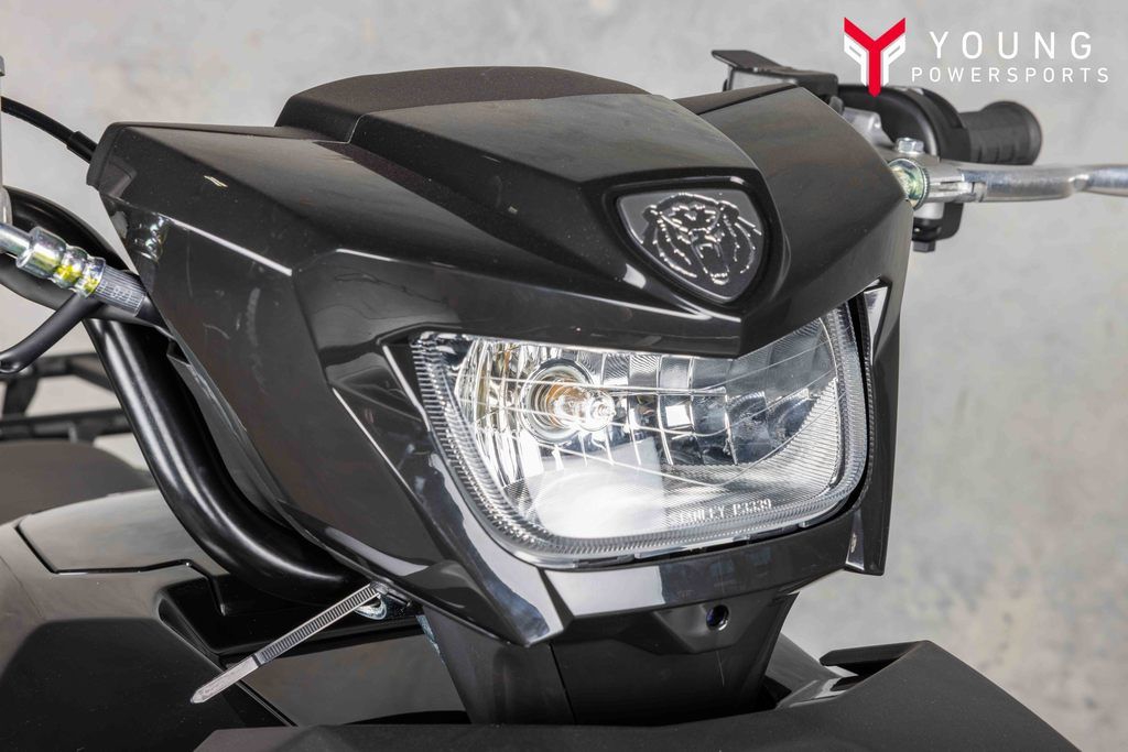 A handlebar-mounted halogen work light provides additional illumination that moves with rider input for added flexibility.