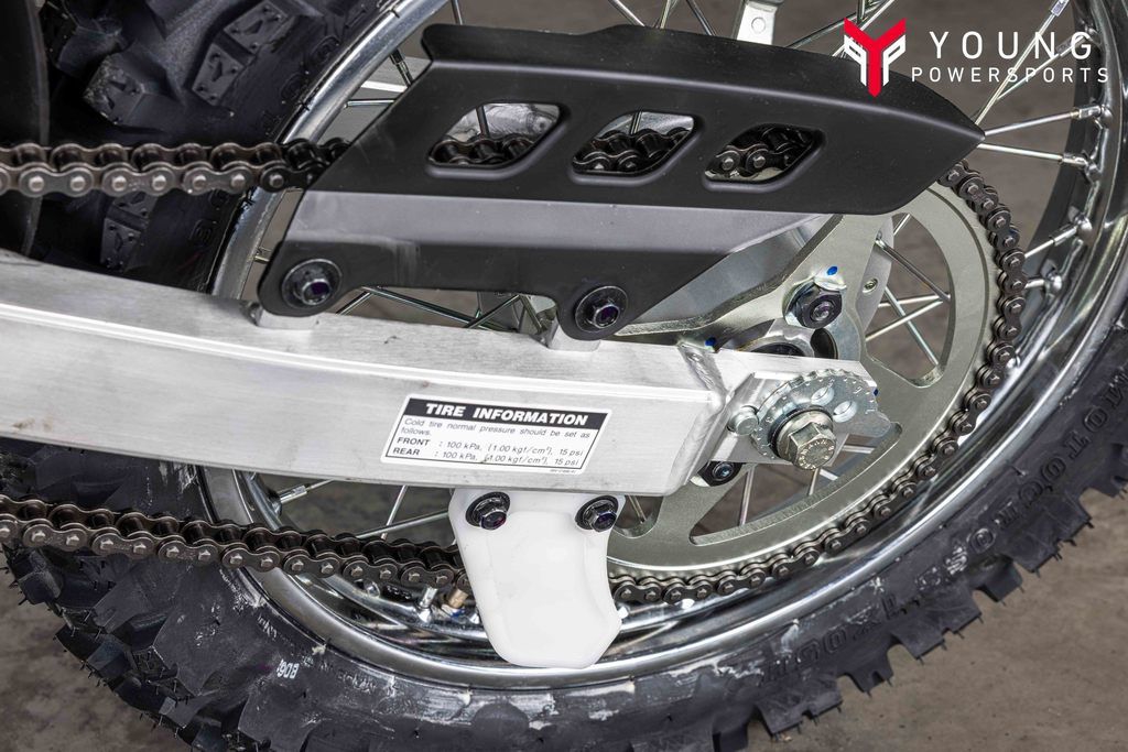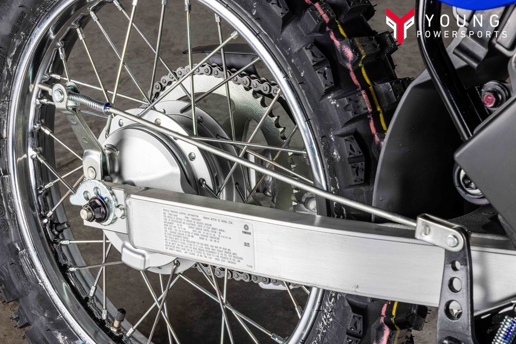 The TT-R125LE features a lightweight aluminum box-section swingarm with snail-type chain adjusters for reduced unsprung weight and optimum suspension performance.