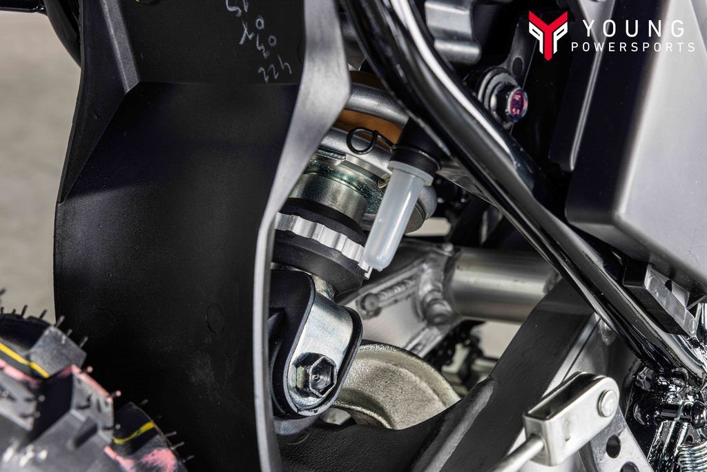 The single rear shock features compression and the rebound damping adjustability with 6.6 inches of travel for predictable handling and control.