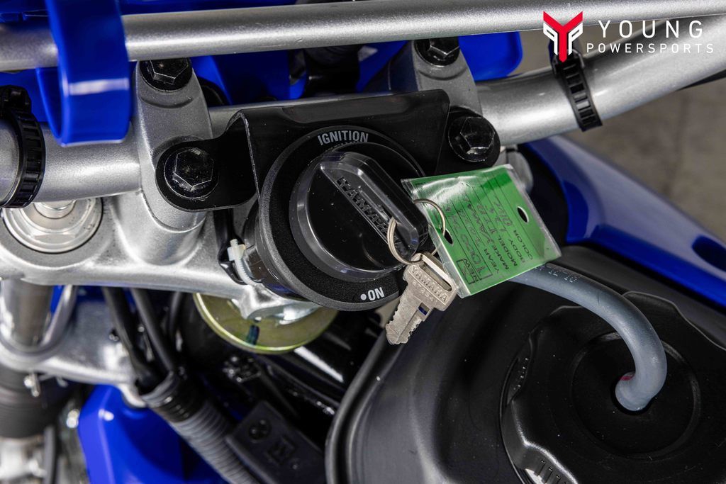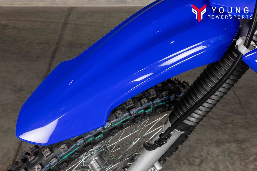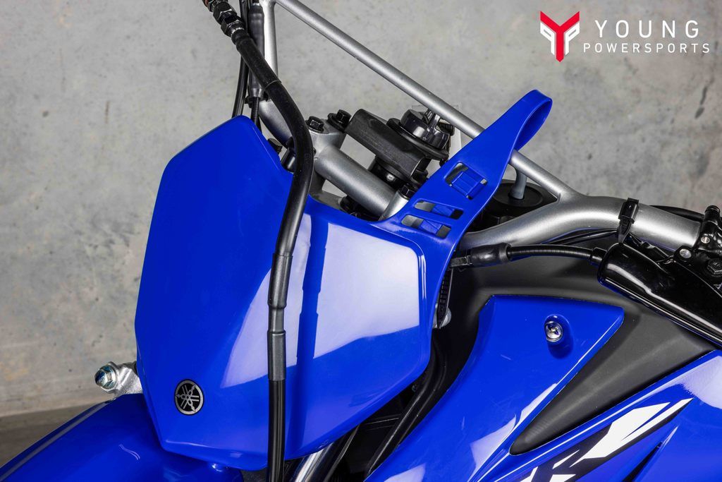 Team Yamaha-inspired colors and graphics with front and side number plates are styled like the YZ motocross lineup, while the sleek, narrow fuel tank creates a big-bike look and feel.