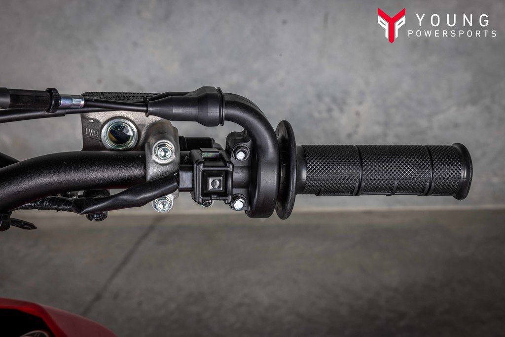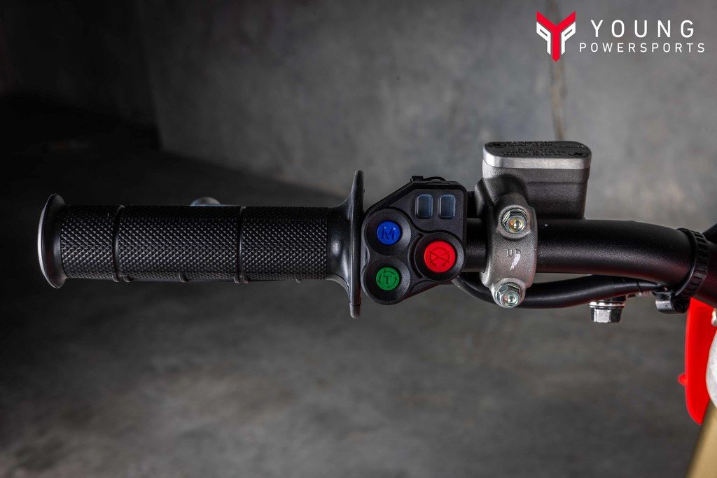 Customize your engine's power delivery on the fly with the convenient left-side handlebar-mounted blue button, allowing you to easily switch between Standard, Smooth, and Aggressive modes to suit varying track conditions or rider preference.