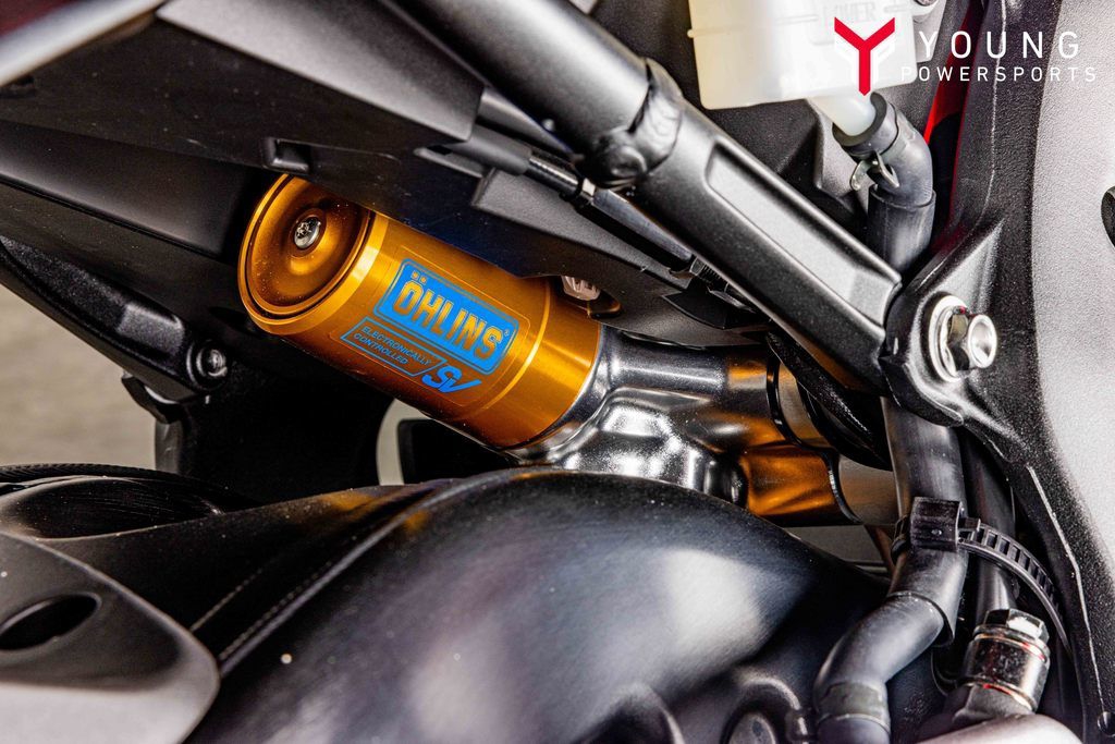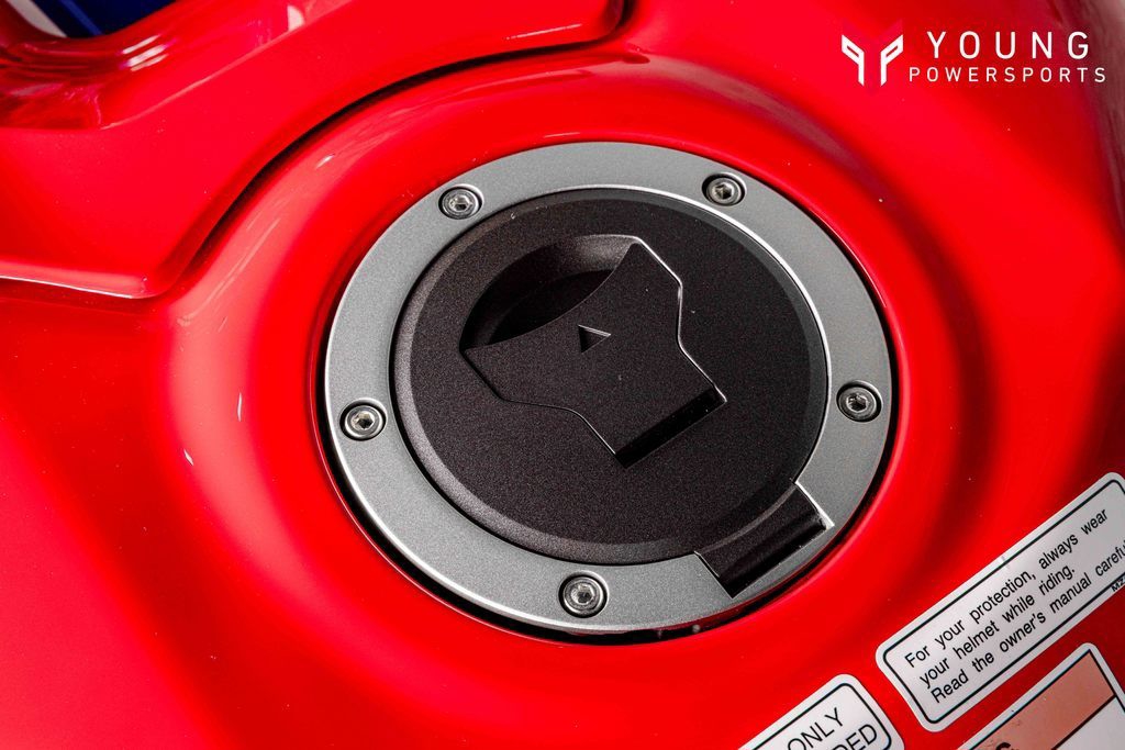 Developed jointly with Akrapovic, the muffler is made out of titanium for light weight and improved mass centralization, while a special valve helps boost torque at lower revs and increase horsepower at higher rpm.
