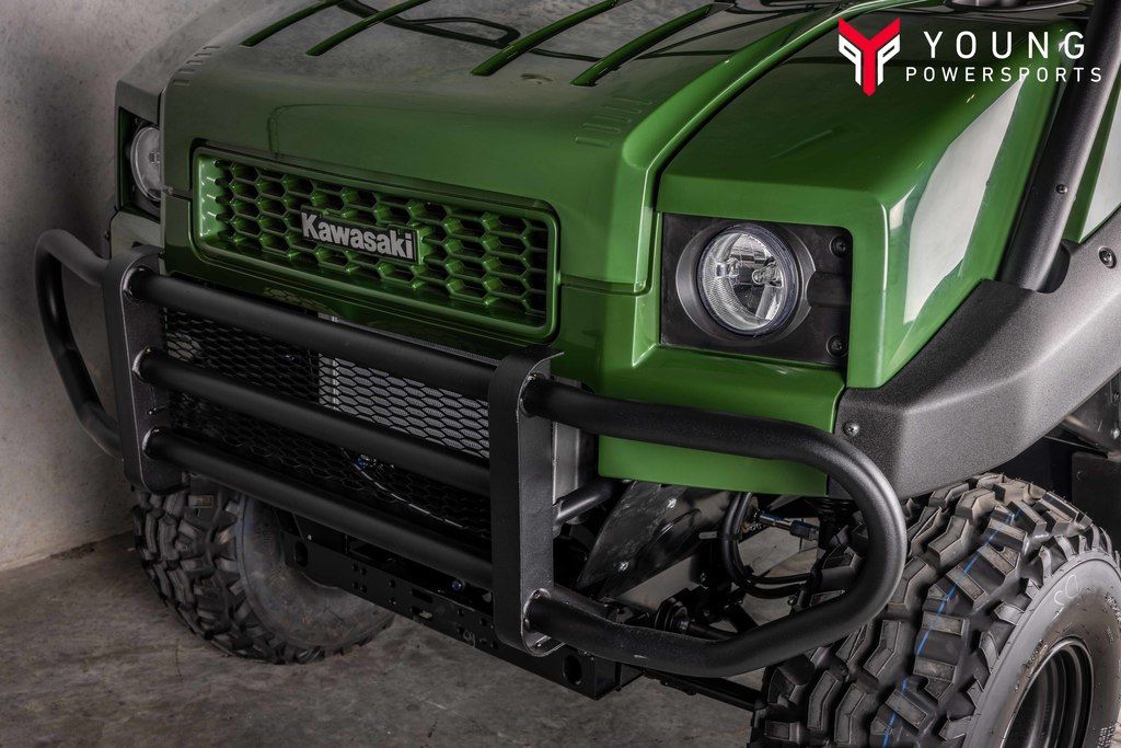 Steel tube ladder-type frame is the sturdy foundation of Kawasaki MULE™ side x sides. Optimized rigidity contributes to traction, stability, and ride comfort while the Roll Over Protective Structure (ROPS) and steel front bumper provide a rugged external structure.