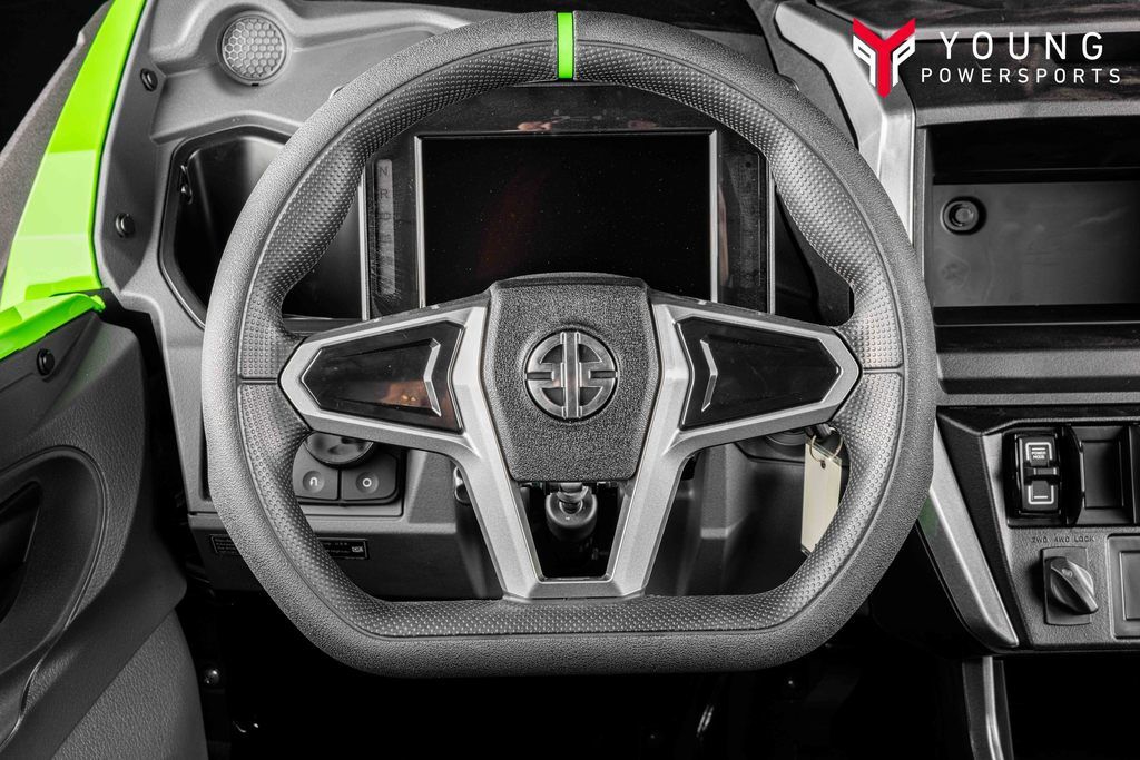 As the new Teryx® side x side flagship, it was important that the Teryx4/5 H2 side x sides look the part. The sleek, low-profile design, wide stance, and aggressive front-end are complemented by luxuriously painted Lime Green bodywork—a head-turning combination that conveys both its high level of performance as well as its high-grade build.