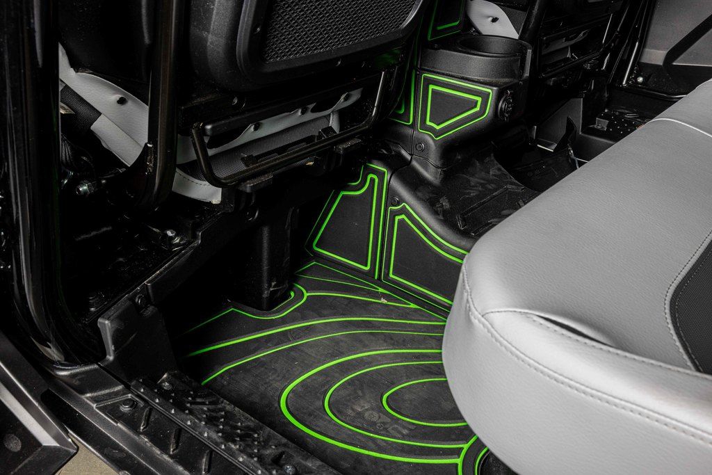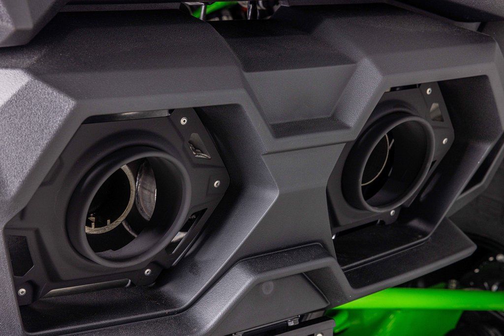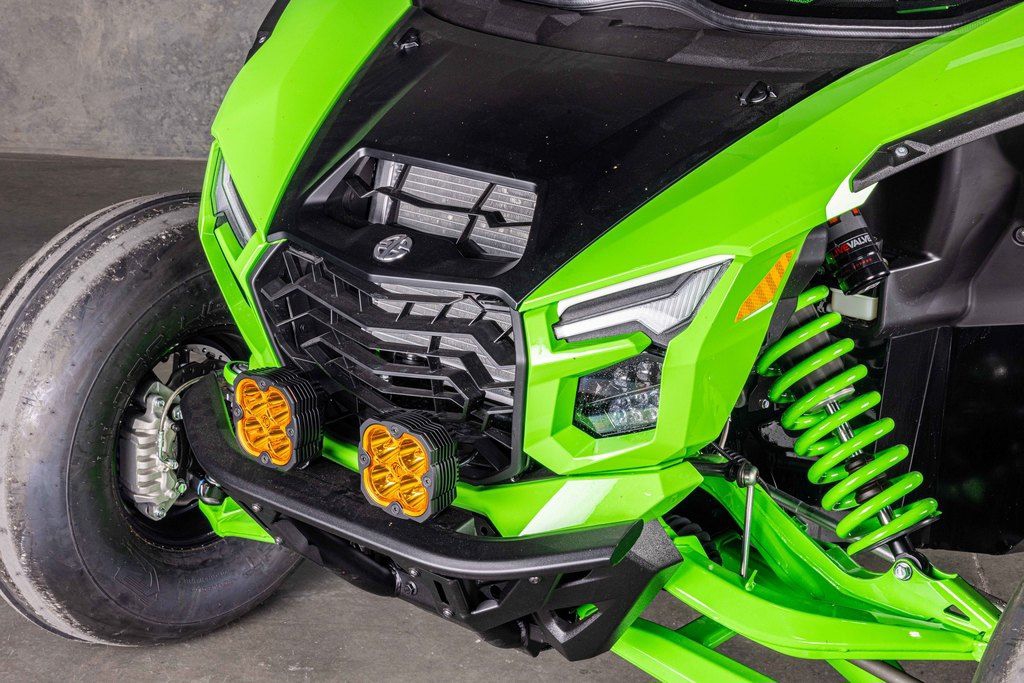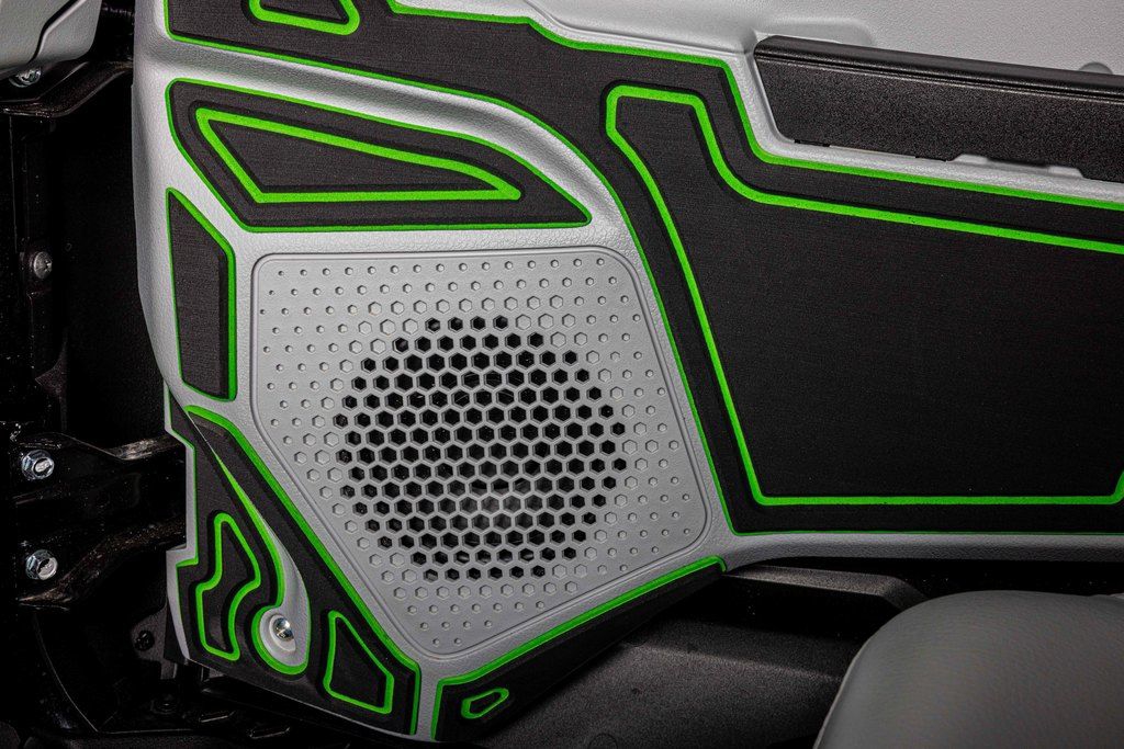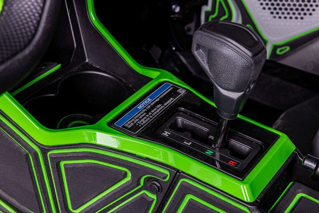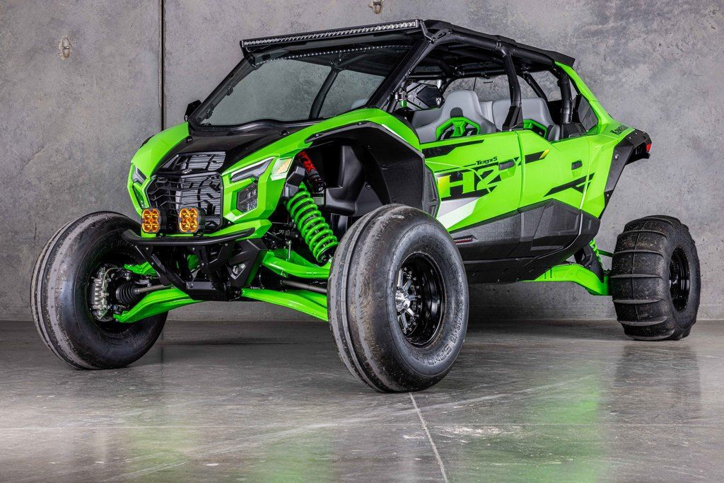 As the new Teryx® side x side flagship, it was important that the Teryx4/5 H2 side x sides look the part. The sleek, low-profile design, wide stance, and aggressive front-end are complemented by luxuriously painted Lime Green bodywork—a head-turning combination that conveys both its high level of performance as well as its high-grade build.