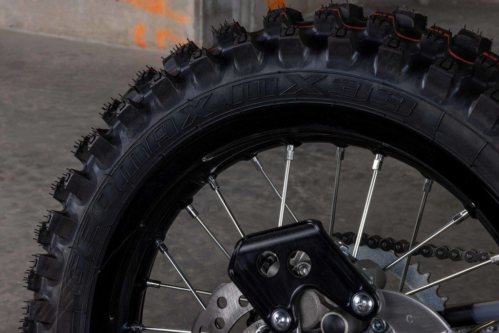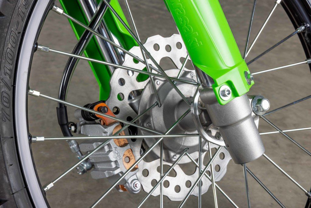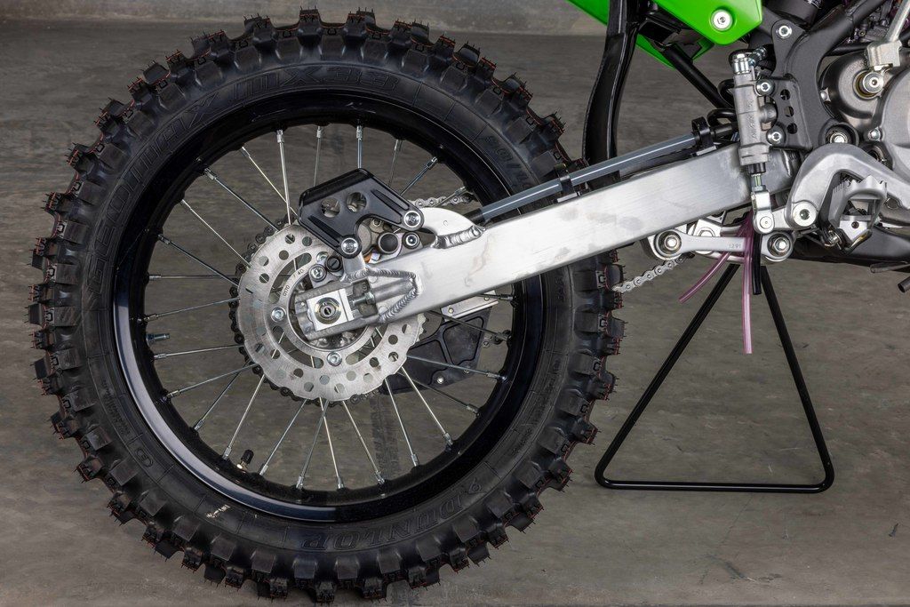 CHASSISSupermini wheels, MX33 Dunlop tires, and disc brakes give the KX™112 enhanced grip and stopping power. Riders can fine tune settings with an adjustable suspension and rely on a sturdy perimeter frame to help push through long motos.