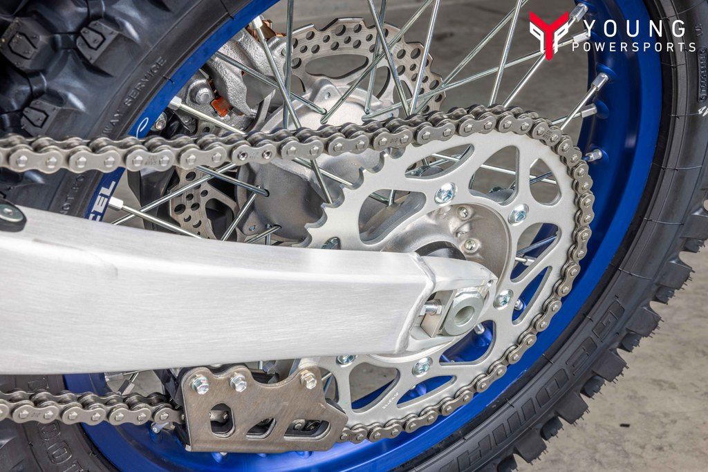 The YZ250X is focused on cross country competition with an 18-inch rear wheel, wide-ratio gearing, standard side stand, sealed O-ring chain, reserve fuel petcock and a new water-resistant PVC handle bar pad, all adding up to exceptional cross country performance.
