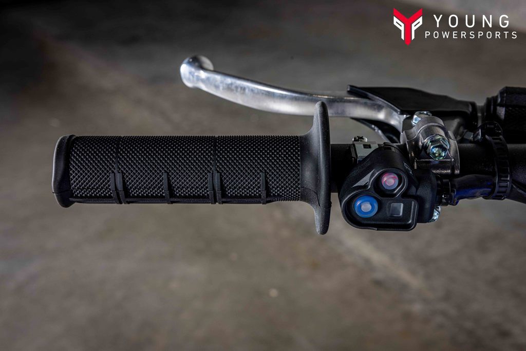 Lightweight handlebar-mounted switchgear allows the rider to quickly select between preloaded engine maps.