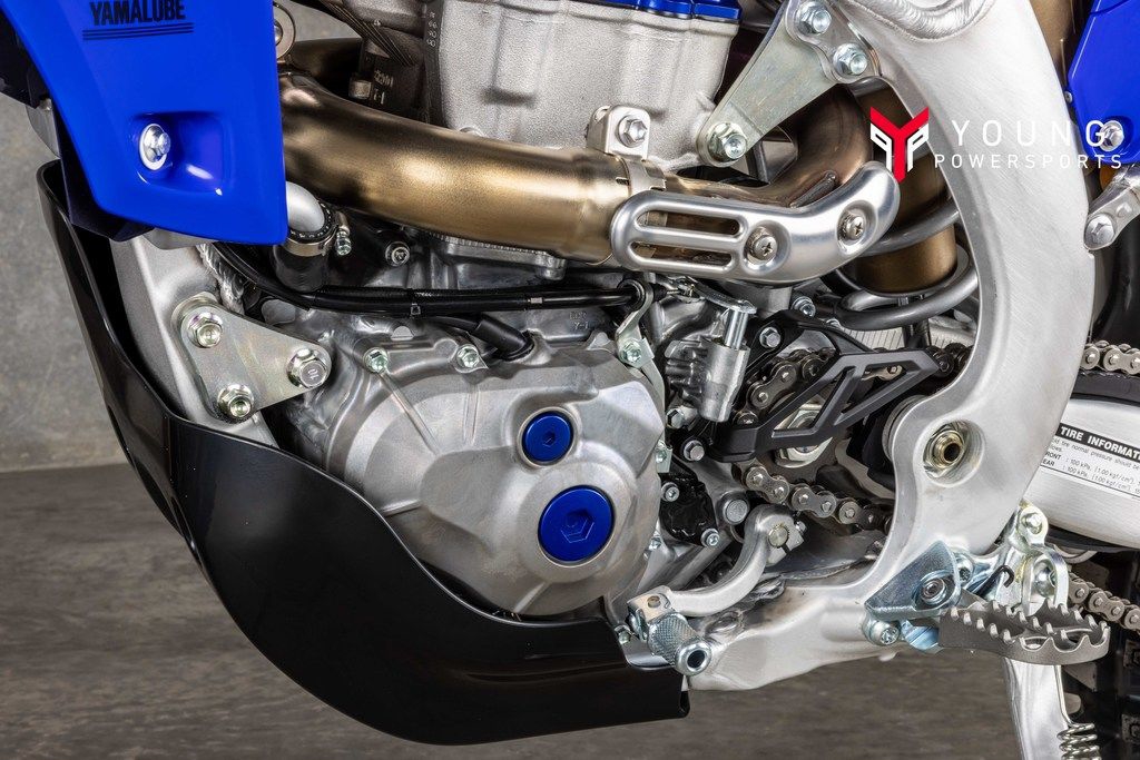 Powerful 450cc Four-Stroke EngineFeaturing a reversed cylinder head layout, forged aluminum piston, 39 mm titanium valves, lightened crank assembly and dry sump lubrication, the YZ450FX's advanced DOHC four-stroke engine is light, compact and world renowned for its incredibly broad pulling power across the entire rev range. Additionally, ECU settings are tailored to suit the specific needs of cross country and enduro competition.
