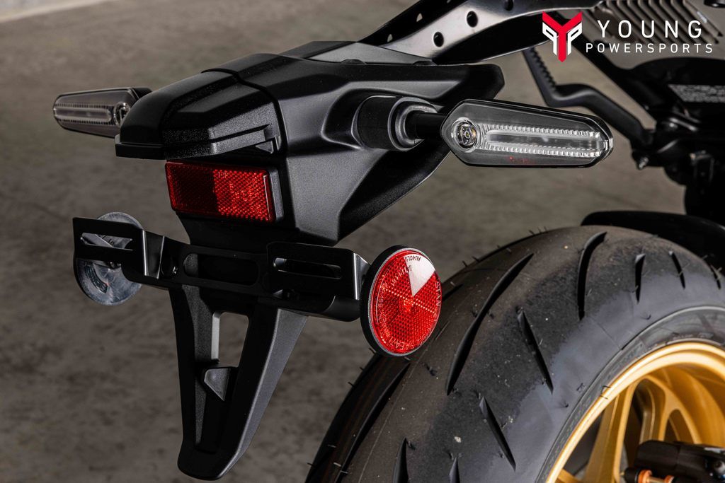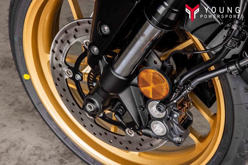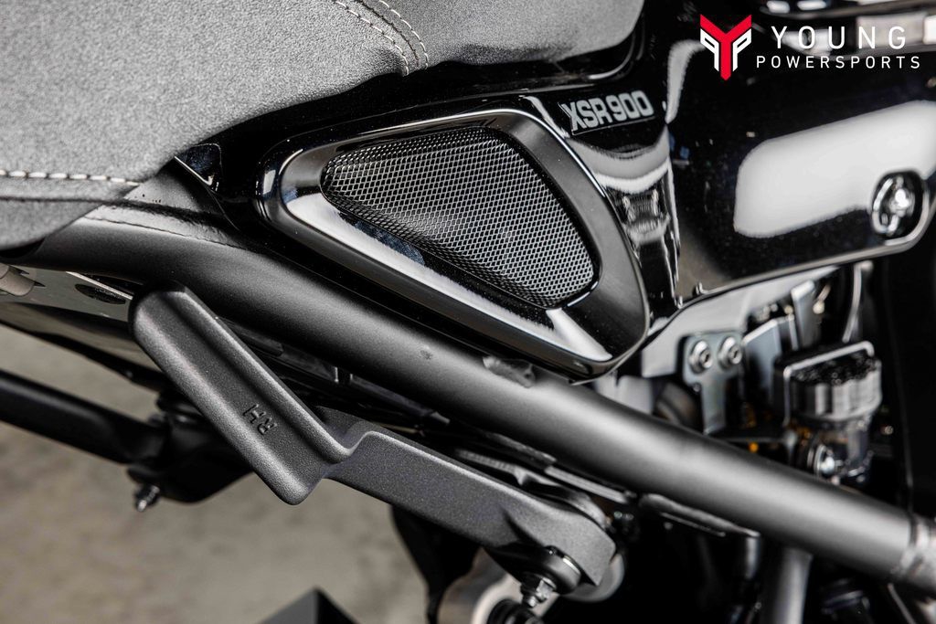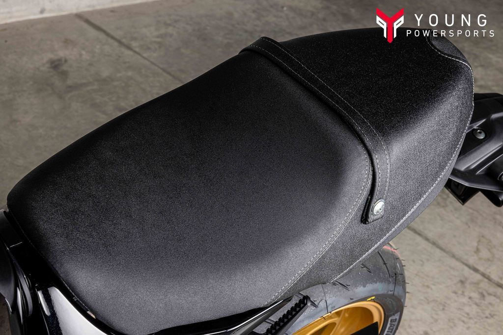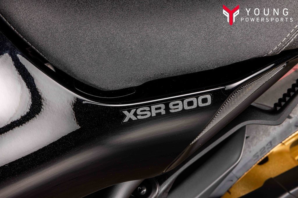 The striking look of the next generation Yamaha XSR900 is apparent from every angle. With the tank design, exposed aluminum frame and side silhouette drawing clear inspiration from iconic Yamaha race bikes of the past, there is also an unmistakably modern design element underscoring the machine's high-performance capabilities. Full LED lighting, new full-color five-inch TFT display and a host of premium touches including drilled fork caps, machined headlight stays, forged brake pedal, hidden passenger pegs, blacked-out levers, darkened brake reservoirs, bar-end mirrors, embossed aluminum rear underplate and aluminum XSR logo all combine to reflect modernity and a high level of fit and finish.