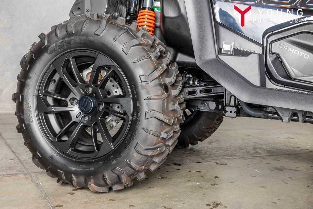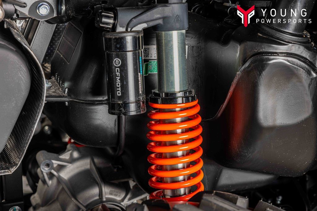 Take on tough terrain with the CFORCE 1000 Touring’s all-new advanced suspension system, featuring high-pressure gas shocks with piggyback reservoirs for a fully customizable ride. Adjust preload, compression, and rebound settings on both front and rear to your exact preferences for any condition. Specifically designed for a smooth two-up riding experience, the suspension ensures stability for both rider and passenger. Complementing this is a set of robust 14" cast aluminum rims, combining enduring performance with rugged style to elevate your off-road adventures.